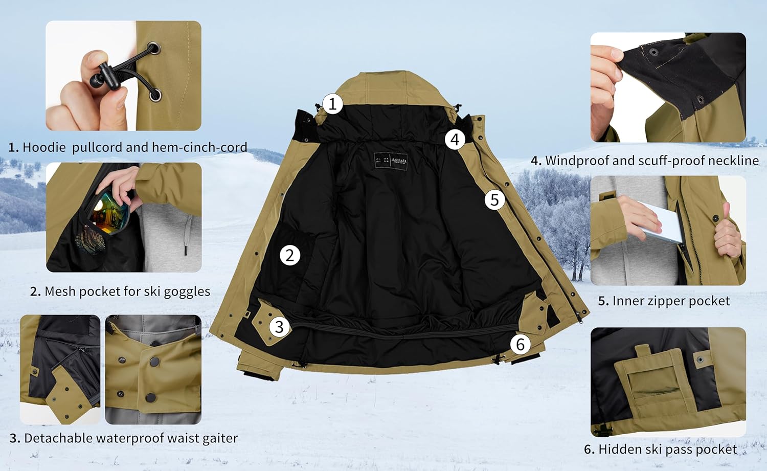 Actleis Men's Waterproof Snowboarding Jacket Winter Warm Windproof Ski Snow Coat With Hood