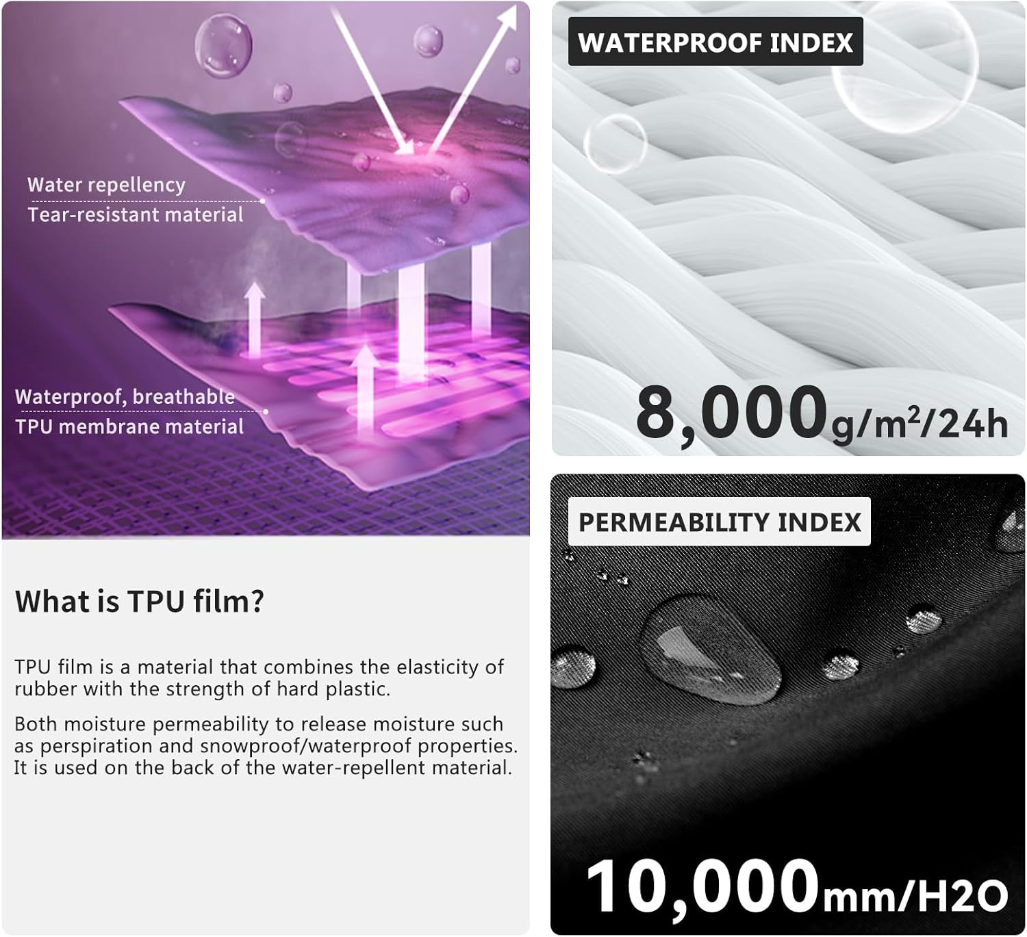 GSOU SNOW Men's Ski Jacket Waterproof Snowboard Jackets Windproof Baggy Snowboarding Coat Winter Outdoor Sports Snow Hooded