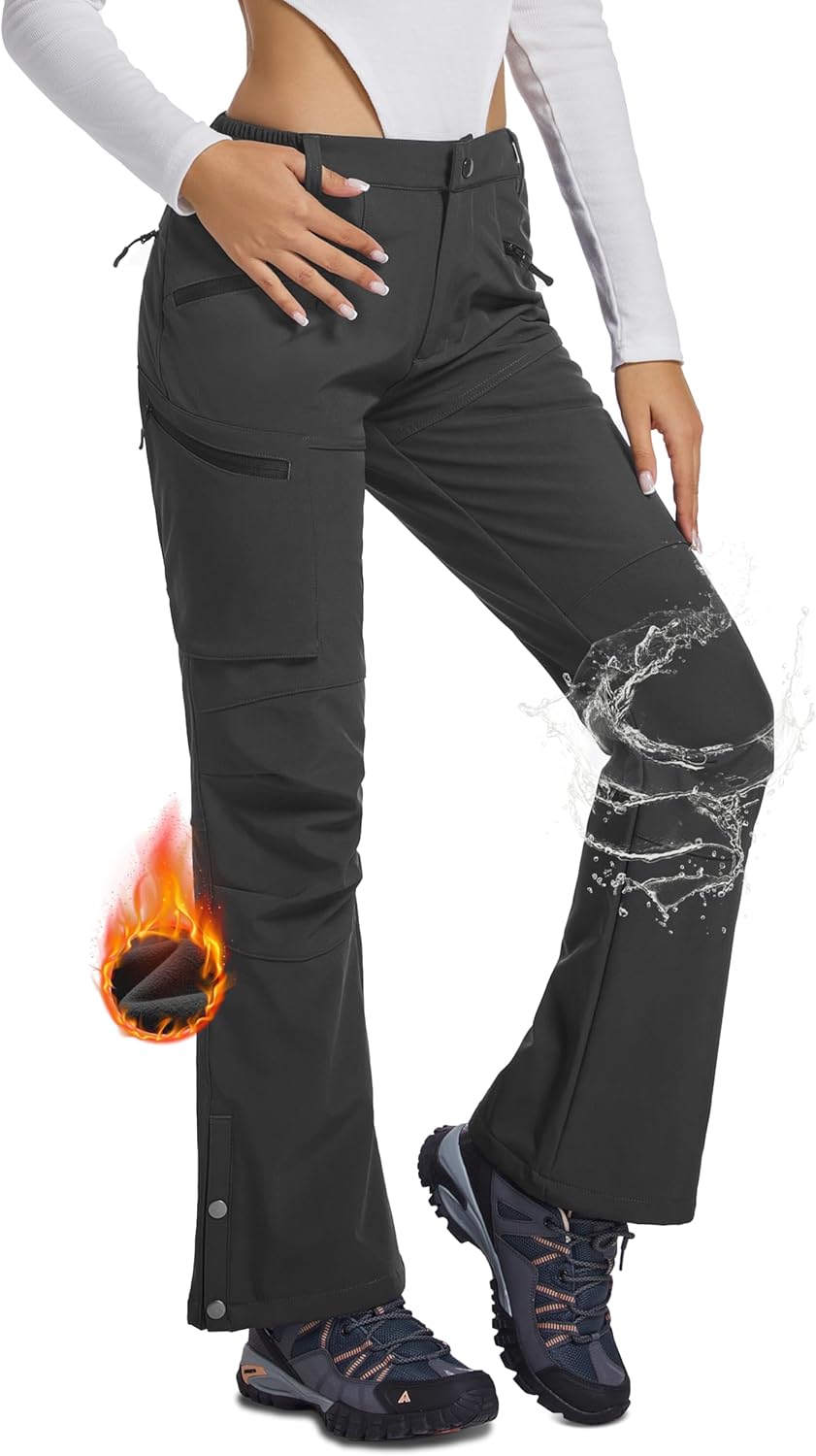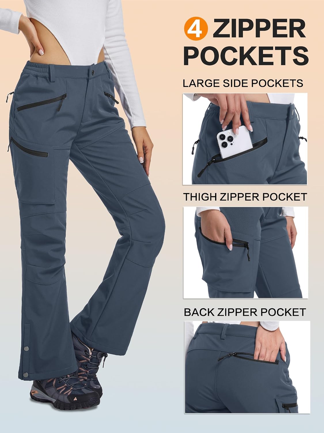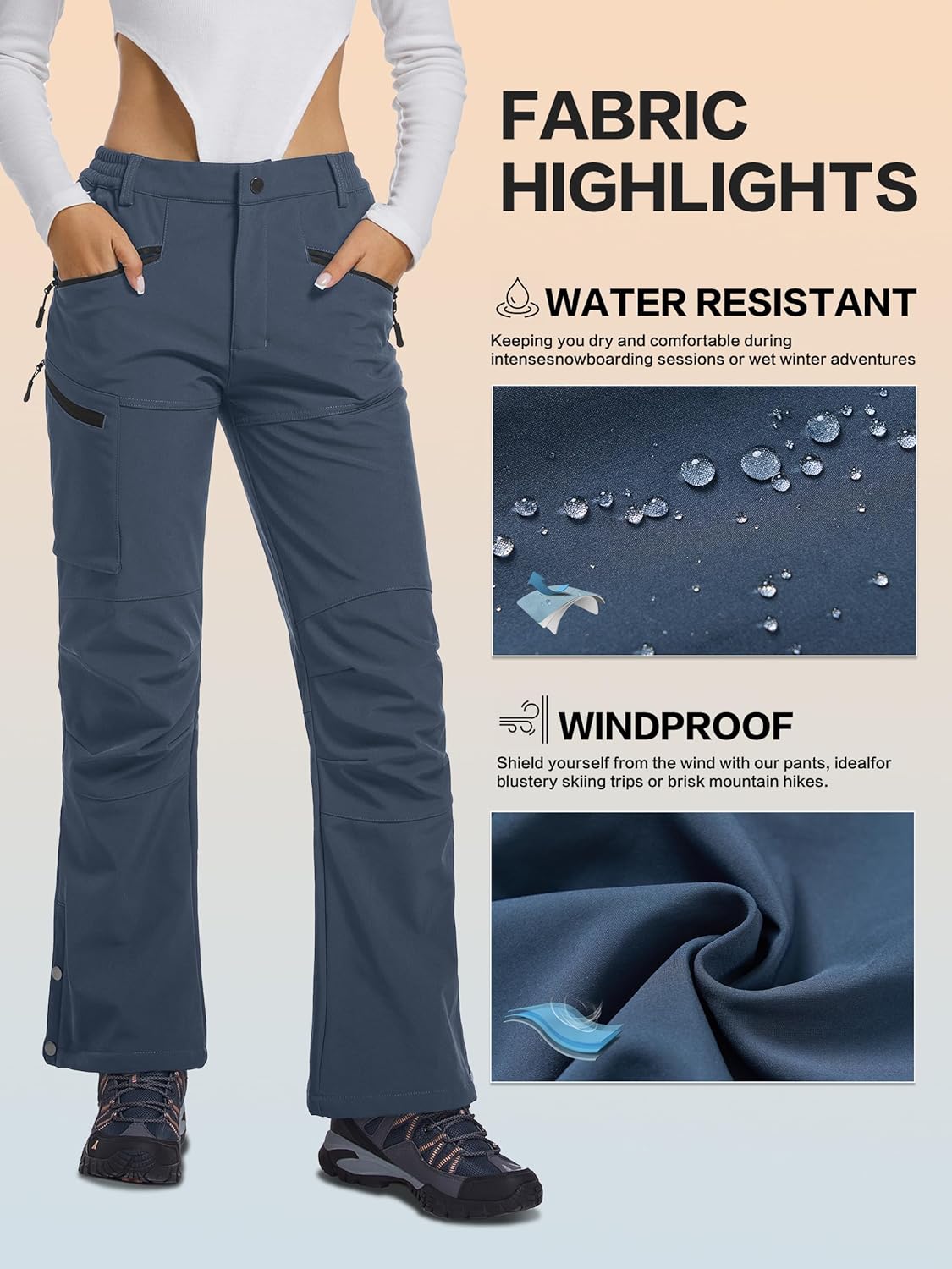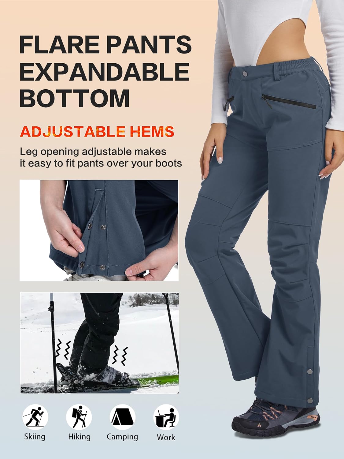 BALWUKO Women's Snow Ski Hiking Pants Waterproof Fleece Lined Softshell Insulated Winter Snowboarding Outdoor Flare Pants