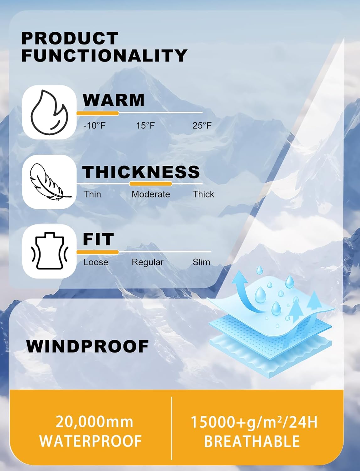 Advanced waterproof membrane keeps snow and wind out while staying breathable.