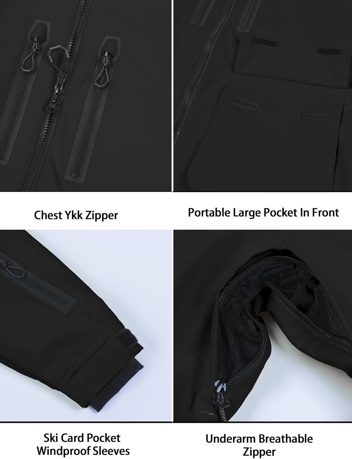 Buyboxs Mens Winter Snow Jacket Waterproof Ski Jackets Snowboard Rain Warm Coat Insulated Hood Fleece Lined