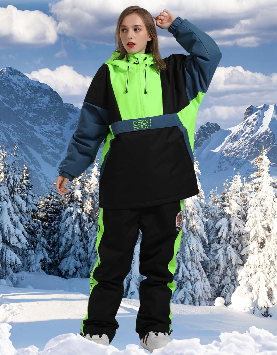 HIGH EXPERIENCE Ski Jacket Snowboard Anorak Coat Pullover Baggy Snow Hooded Insulated Hoodie Waterproof Warm for Women Men