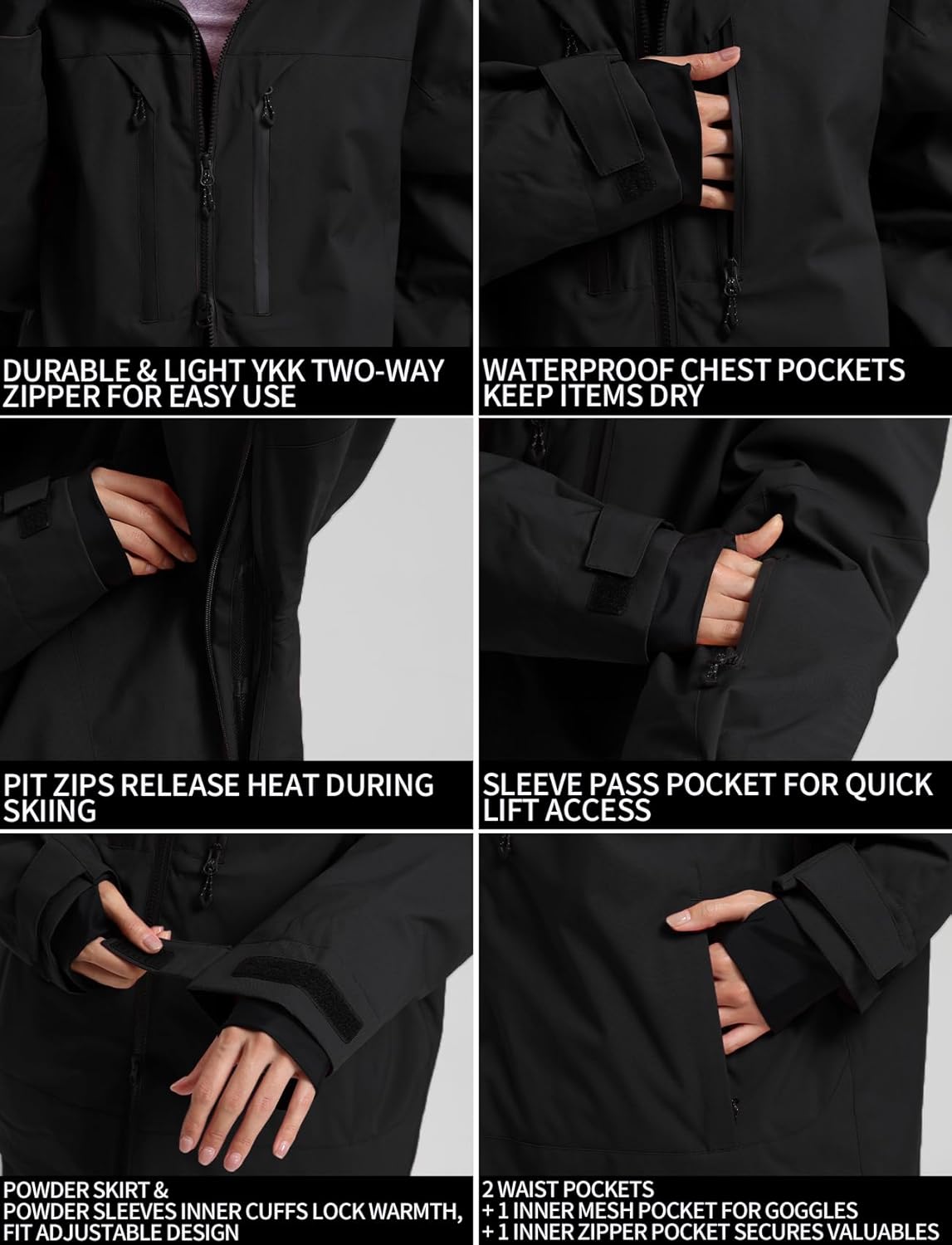 GSOU SNOW Snowboard Jacket Womens Ski Jacket Mens Snow Coat Baggy Waterproof Insulated Winter Hooded Mountain Coats