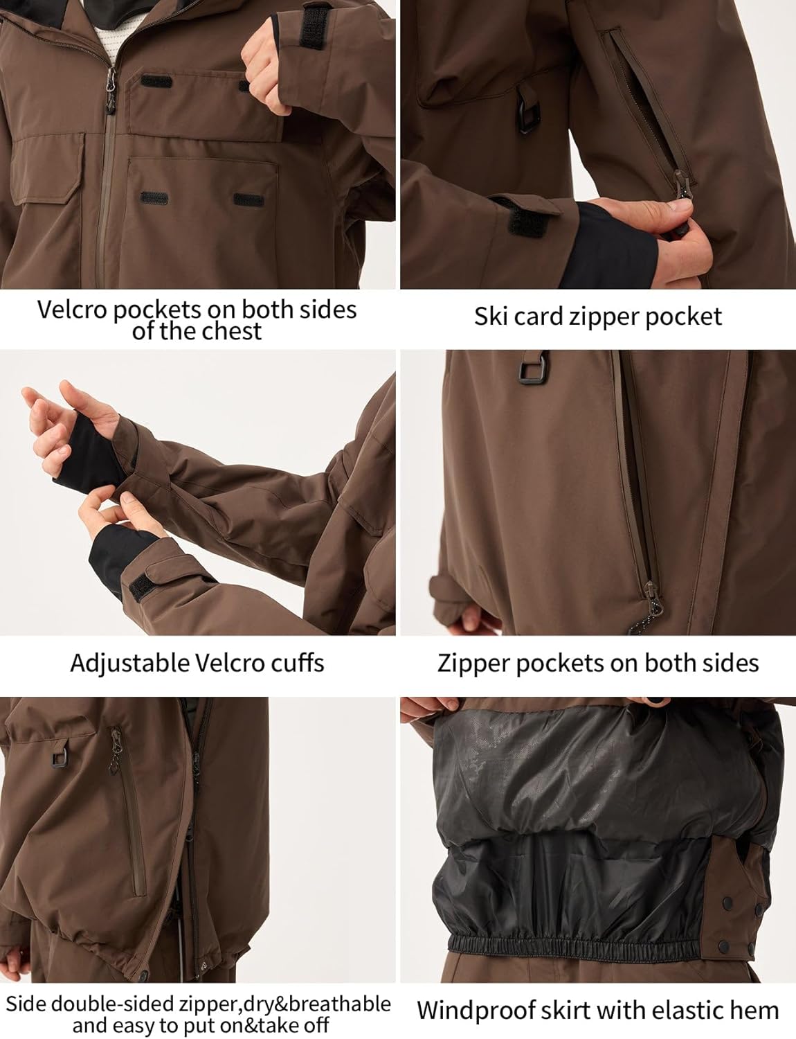 HIGH EXPERIENCE Ski Jacket Snowboard Anorak Coat Pullover Baggy Snow Hooded Insulated Hoodie Waterproof Warm for Women Men