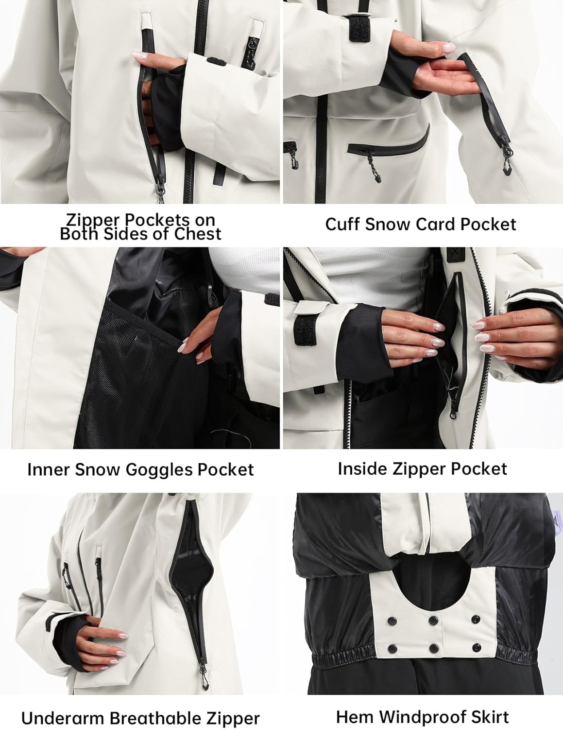 HIGH EXPERIENCE Ski Jacket Snowboard Anorak Coat Pullover Baggy Snow Hooded Insulated Hoodie Waterproof Warm for Women Men