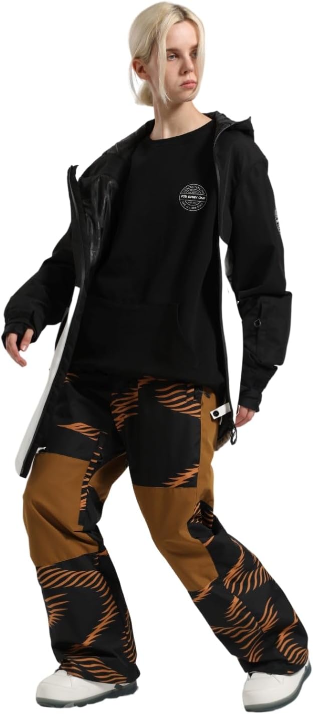 GSOU SNOW Mens Snow Pants Women Baggy Snowboard Pants Loose Fit Insulated Windproof Waterproof for Ski Hiking Winter Outdoor