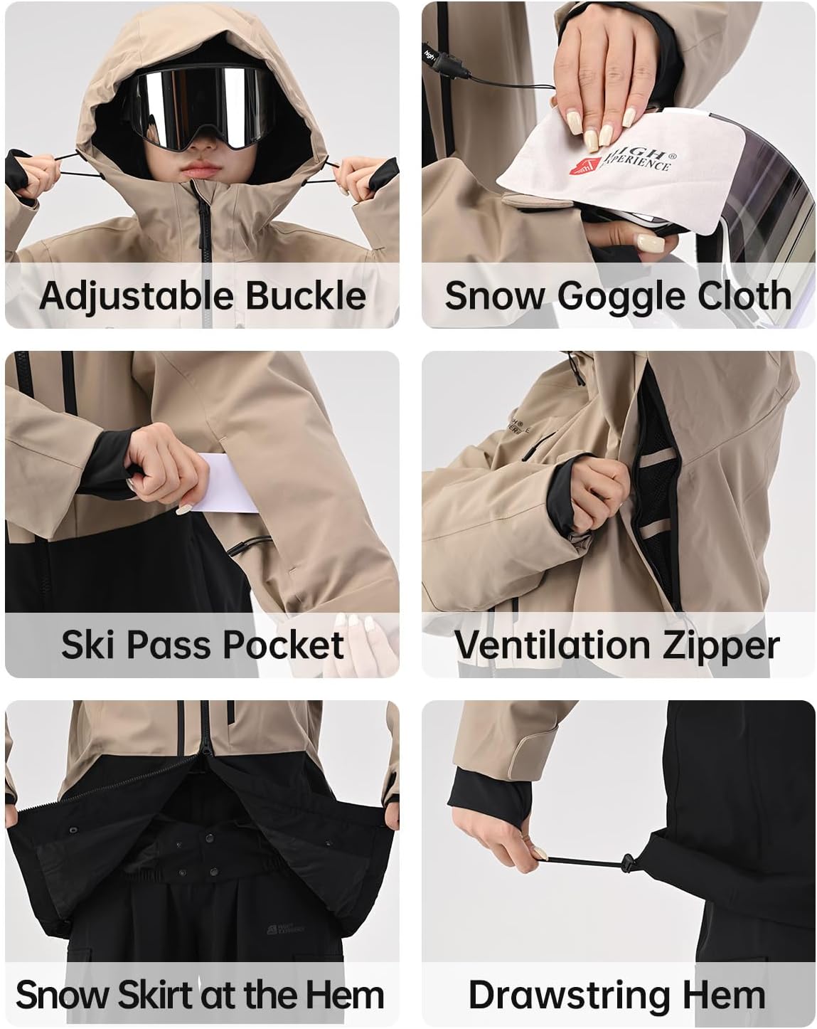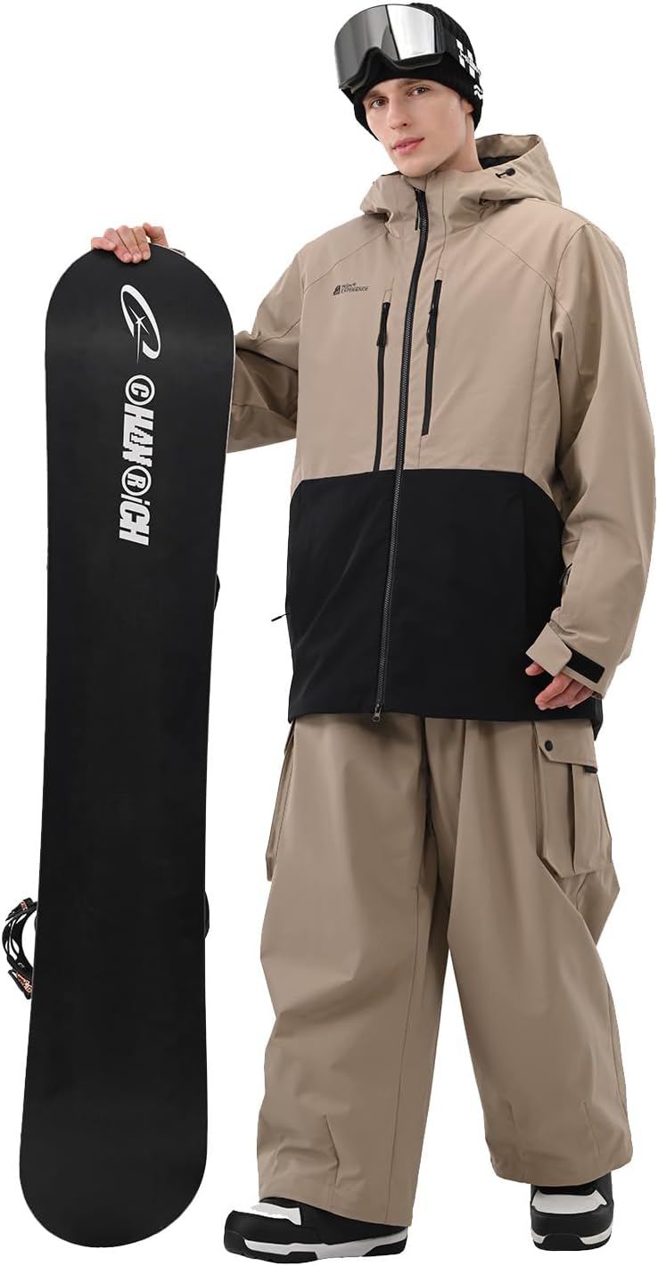 HIGH EXPERIENCE Mens Ski Jacket Snowboard 3L Coat Baggy Waterproof Windproof Warm Insulated Snow Winter Hooded