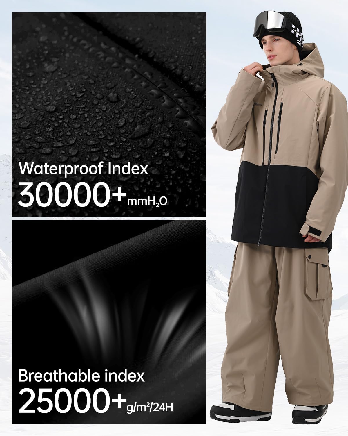 GSOU SNOW Mens Ski Jacket Baggy Snowboard Jacket Womens Insulated Snow Jacket Waterproof Windproof Loose Ski Coat for Skiing