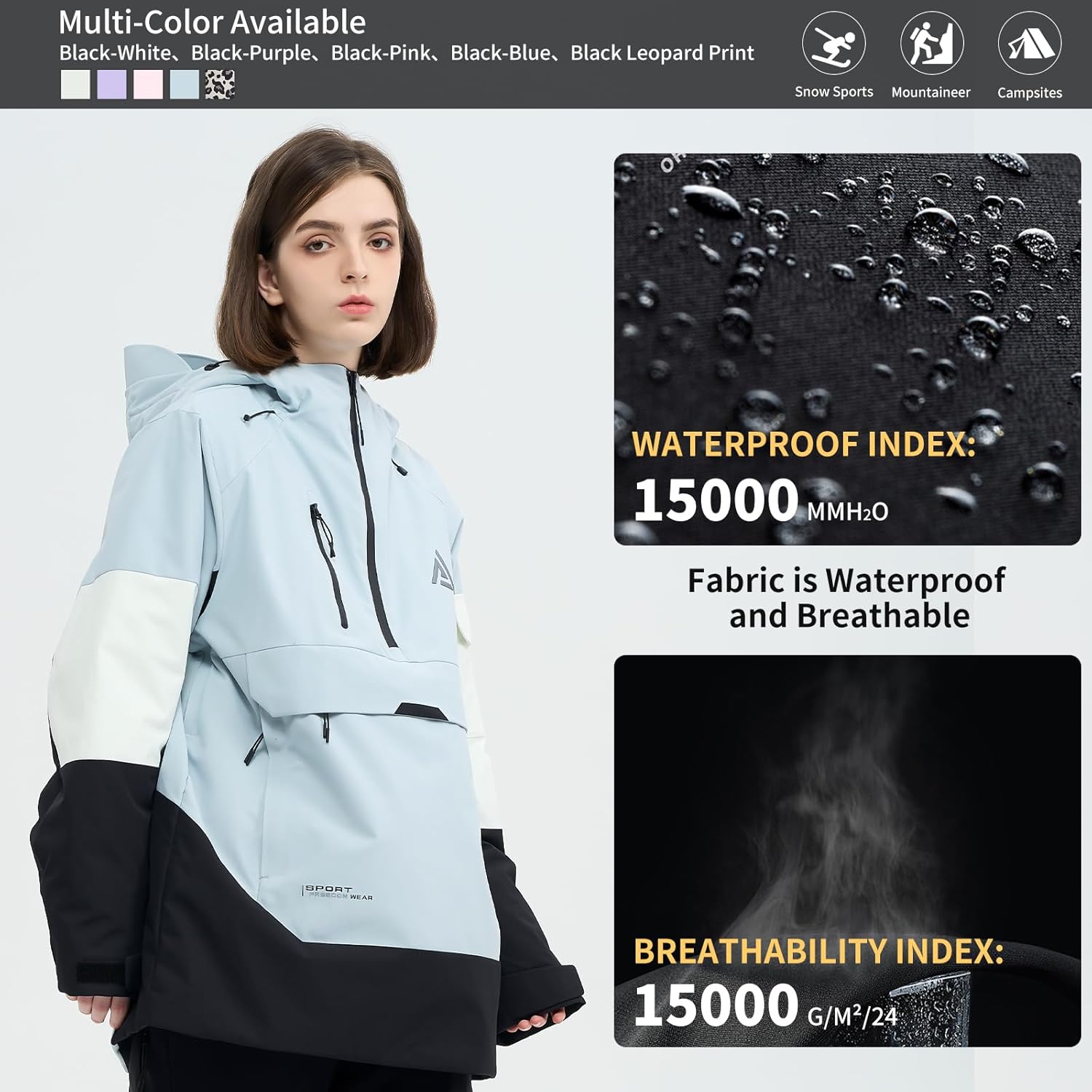 HIGH EXPERIENCE Ski Jacket Snowboard Anorak Coat Pullover Baggy Snow Hooded Insulated Hoodie Waterproof Warm for Women Men