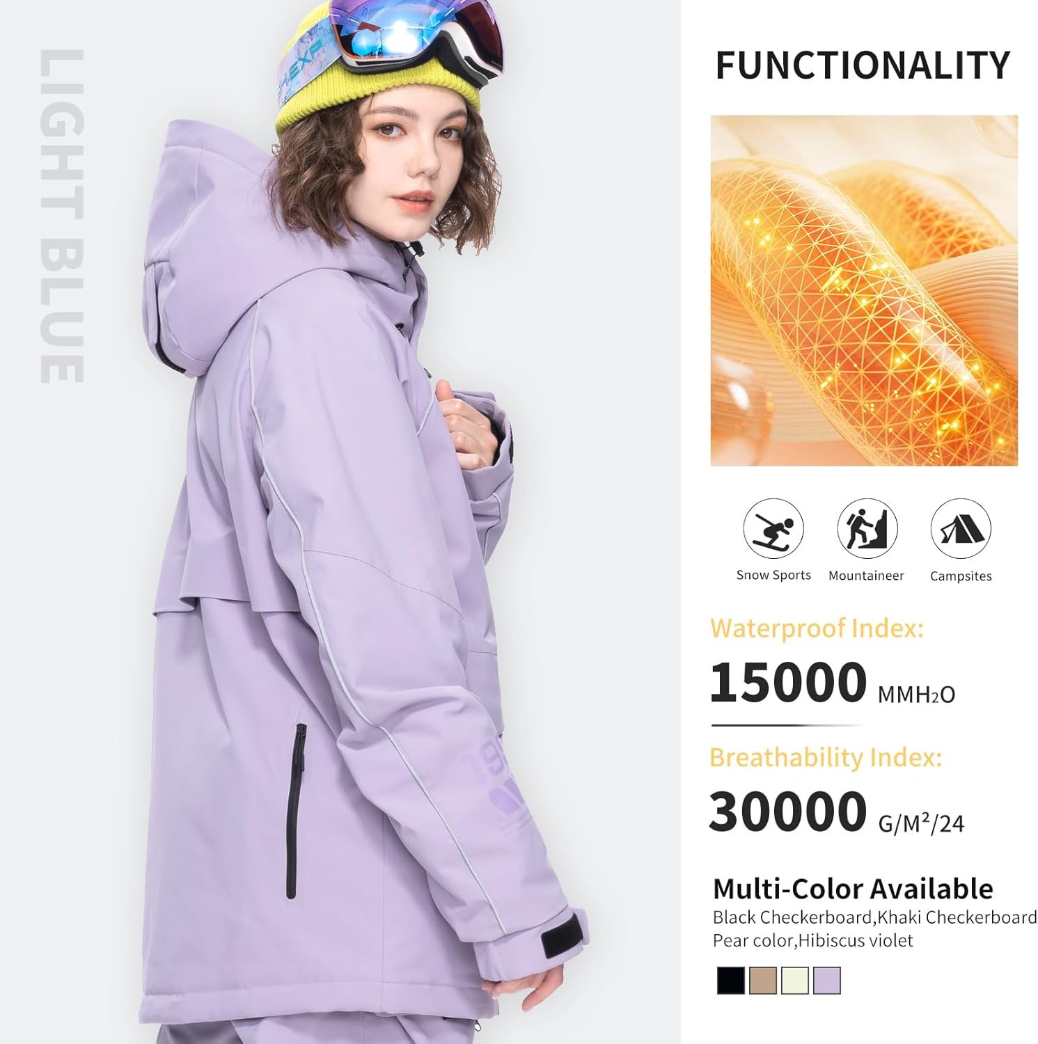 GSOU SNOW Snowboard Jacket Womens Ski Jacket Mens Snow Coat Baggy Waterproof Insulated Winter Hooded Mountain Coats
