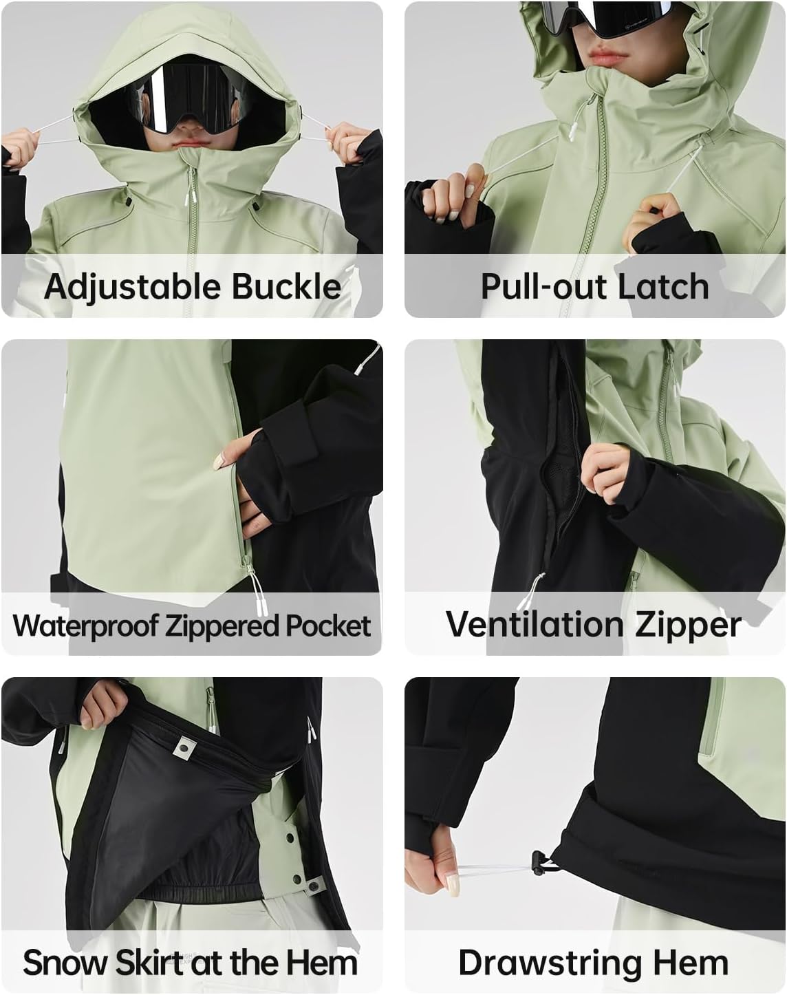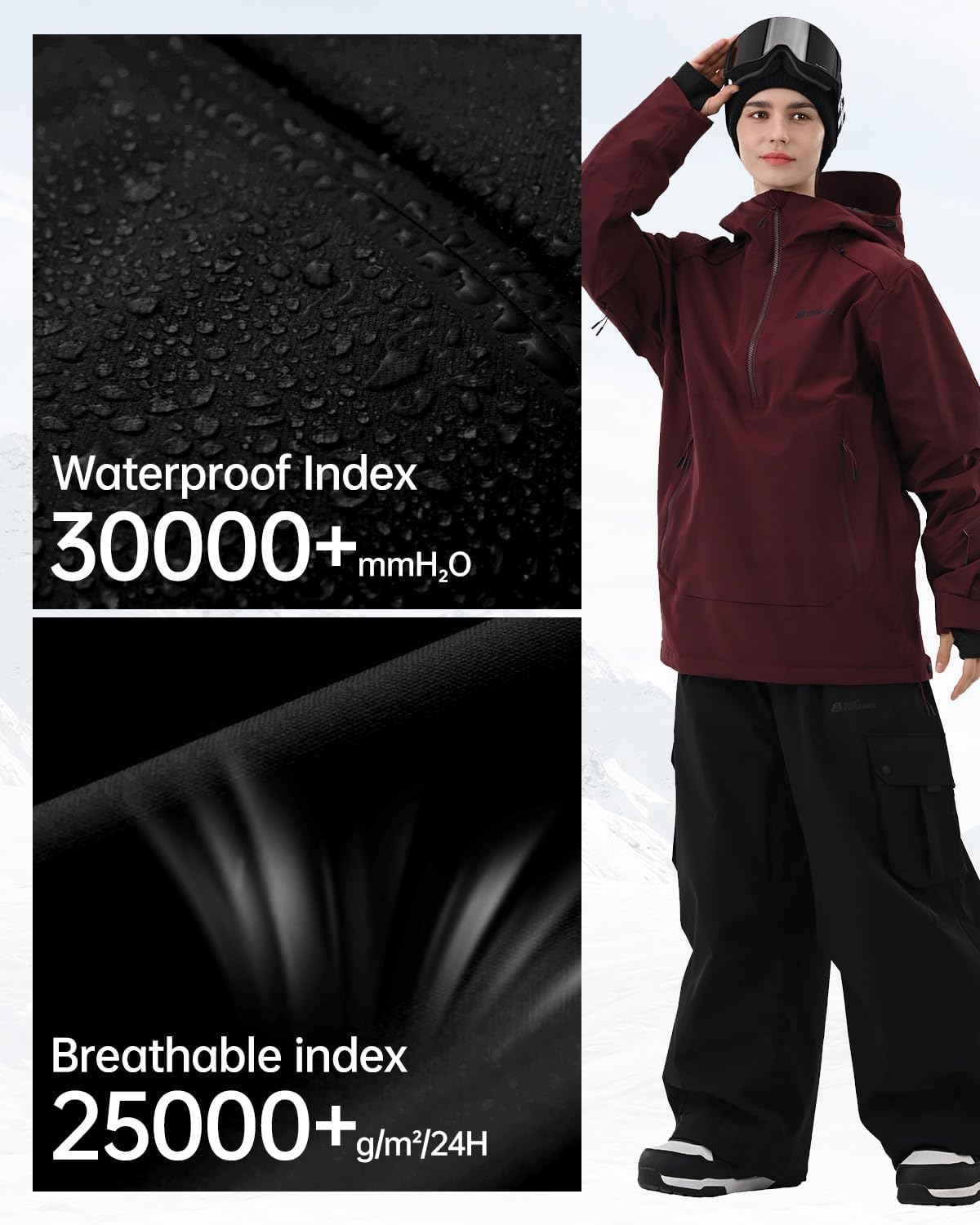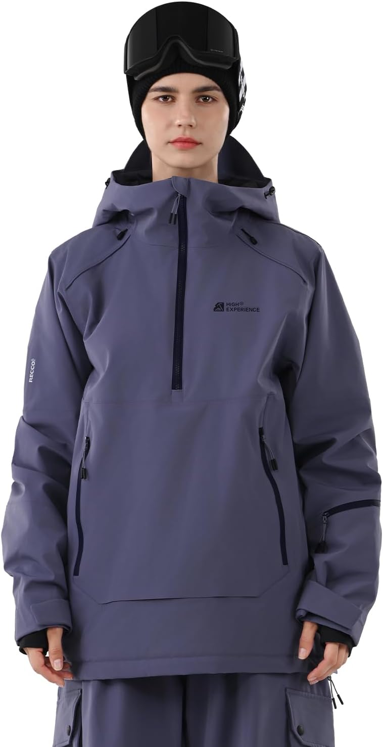 HIGH EXPERIENCE Ski Jacket Snowboard Anorak Coat Pullover Baggy Snow Hooded Insulated Hoodie Waterproof Warm for Women Men