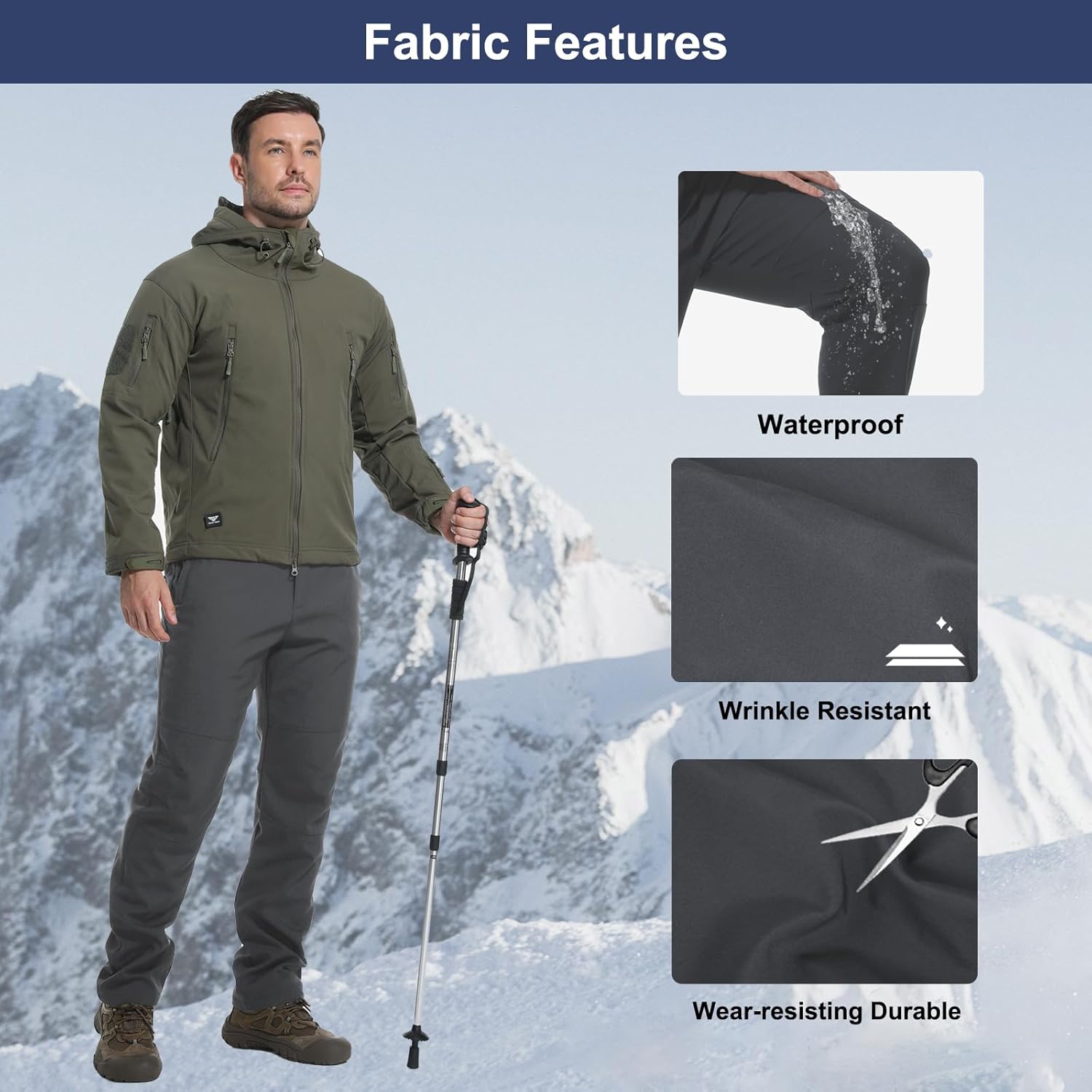 HYCOPROT Men's Snow Ski Pants Waterproof Softshell Outdoor Fleece Lined Snowboard Hiking Pants with Belt