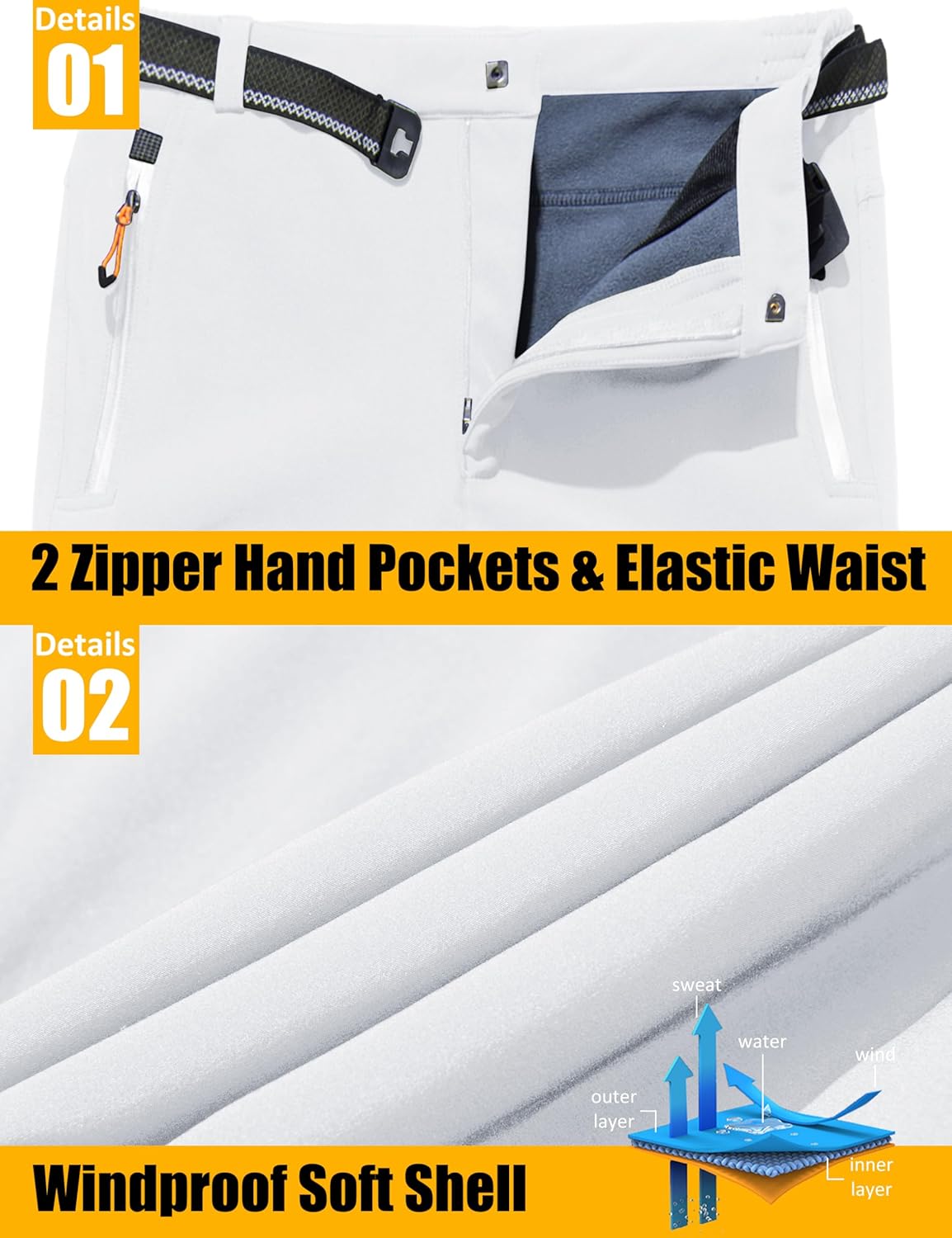 MAGCOMSEN Men's Winter Pants Fleece Lined Ski Snow Pants Water Resistant 4 Zip Pockets Outdoor Pants