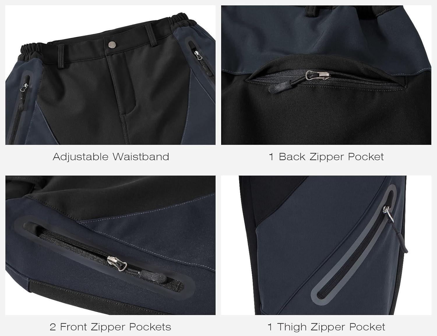 MAGCOMSEN Men's Winter Pants Fleece Lined Ski Snow Pants Water Resistant 4 Zip Pockets Outdoor Pants
