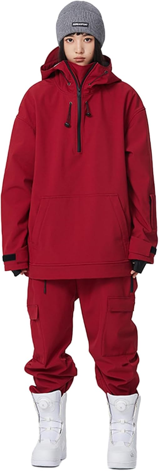 GSOU SNOW Women's Ski Jacket and Pants Set Baggy Snowboard Jacket Snow Suit Waterproof Windproof Hooded Coat