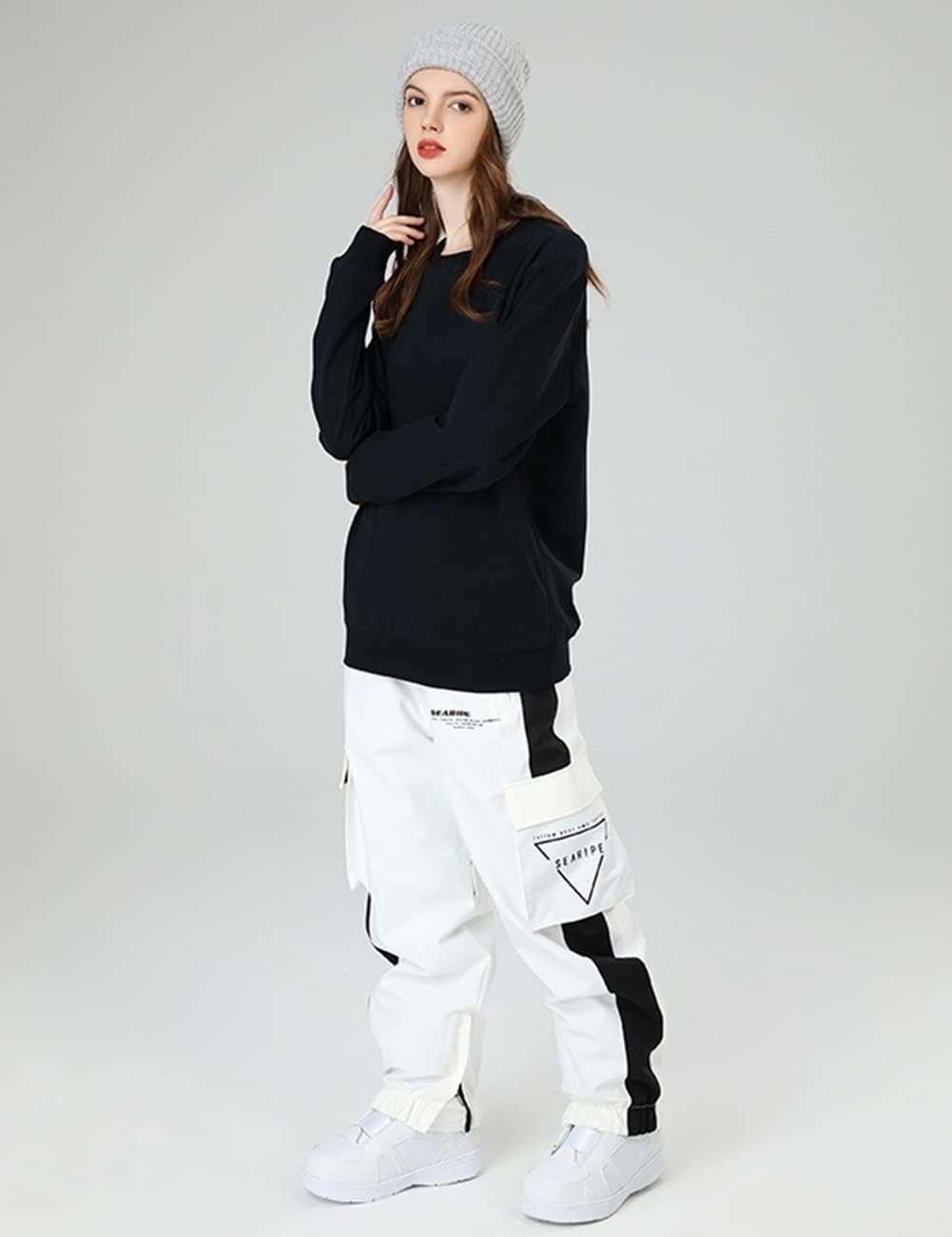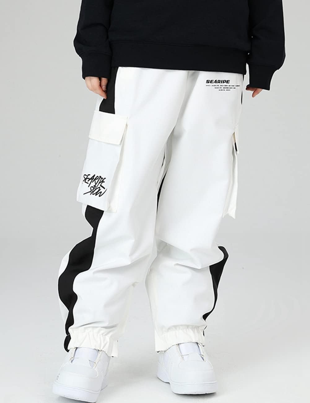 SEARIPE Men Baggy Snow Bibs 3L Cargo Skiing Pants Women Insulated Snow Pants Waterproof Outdoor Snowboard Pant