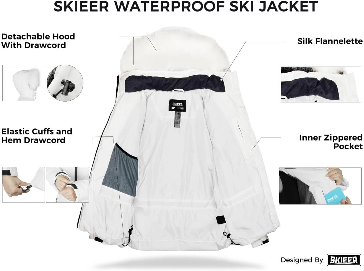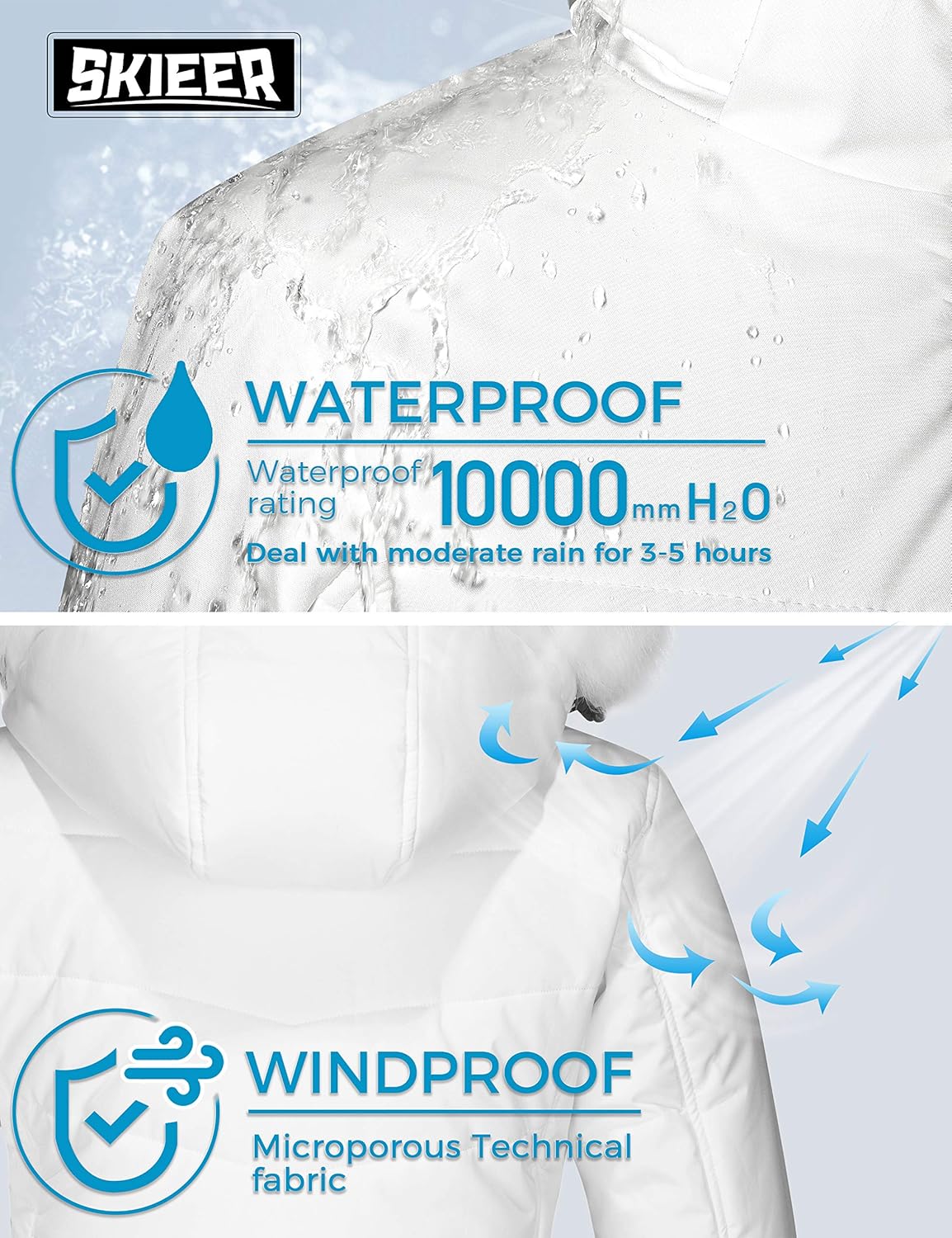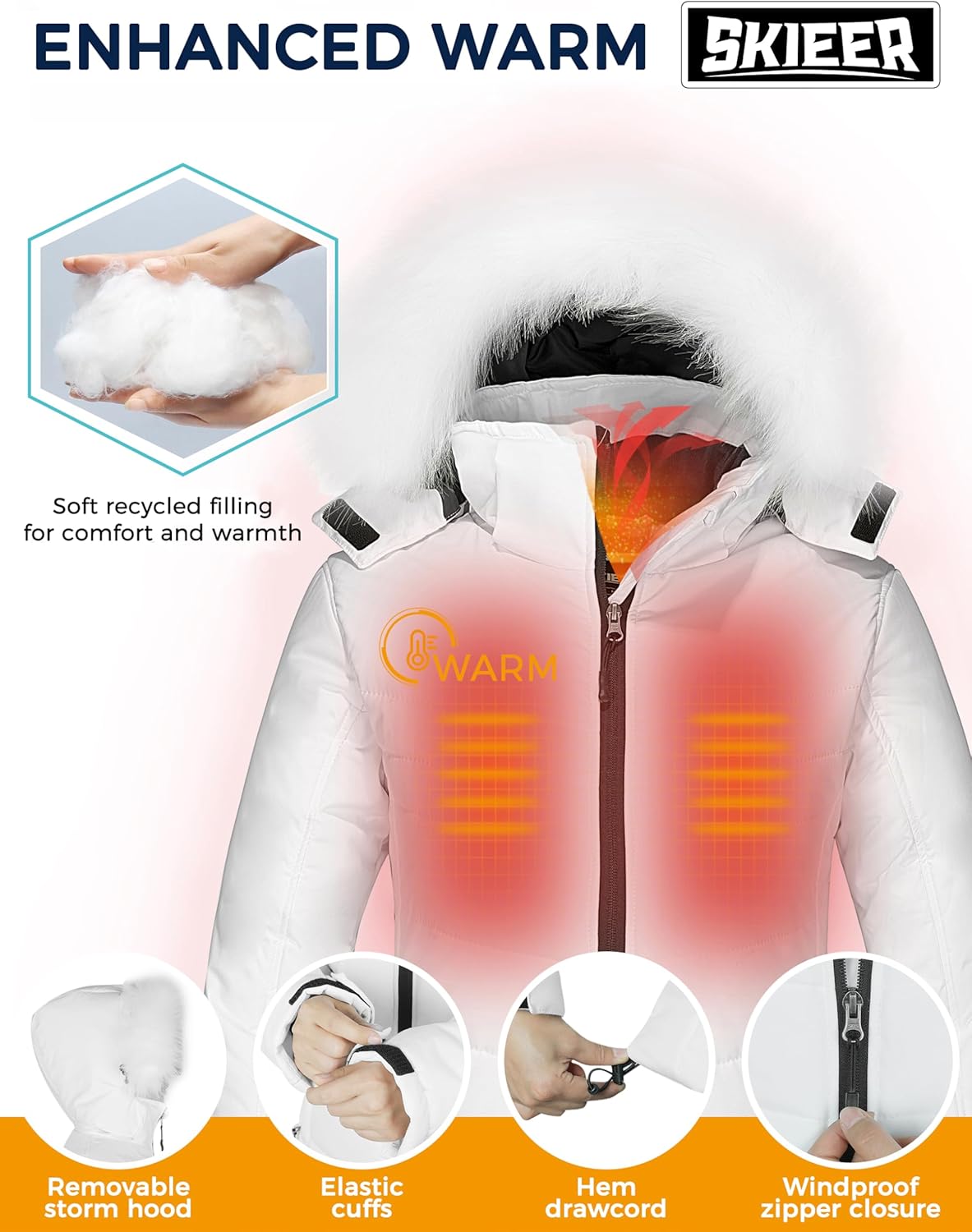 Skieer Women's Waterproof Ski Jacket Warm Puffer Jacket Thick Hooded Winter Coat