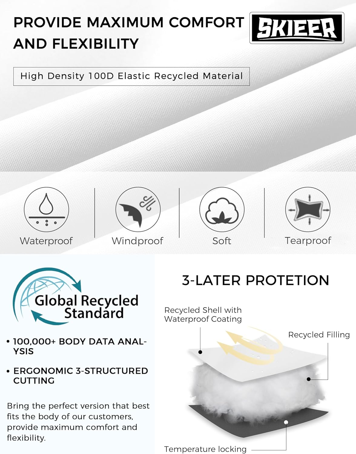 HIGH EXPERIENCE Ski Jacket Snowboard Anorak Coat Pullover Baggy Snow Hooded Insulated Hoodie Waterproof Warm for Women Men