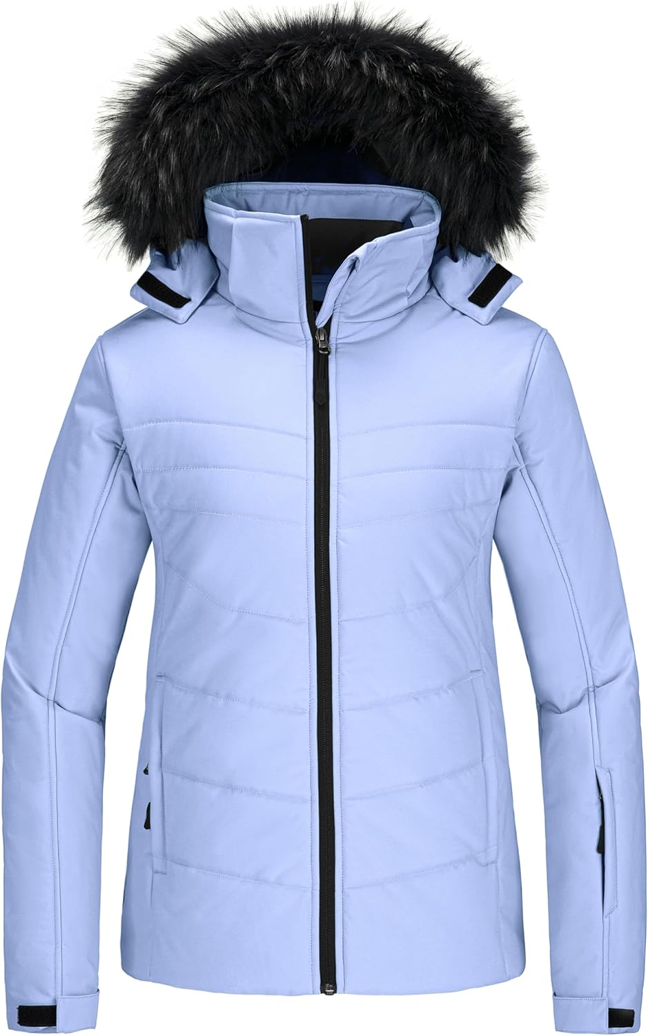 MAGCOMSEN Womens Ski Jacket Waterproof Insulated Snow Jacket Warm Windproof Winter Coats with Hood Fleece Lined Jacket
