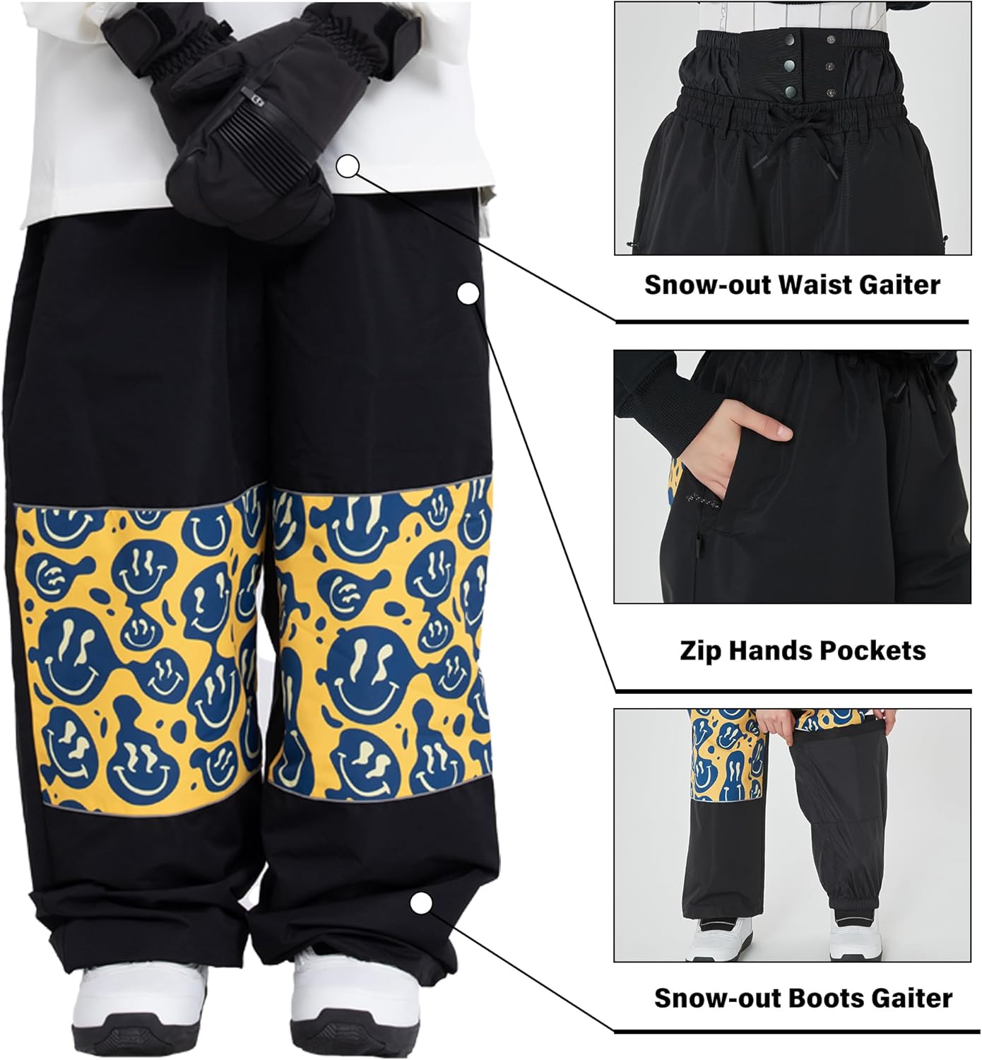 GSOU SNOW Mens Snow Pants Women Baggy Snowboard Pants Loose Fit Insulated Windproof Waterproof for Ski Hiking Winter Outdoor