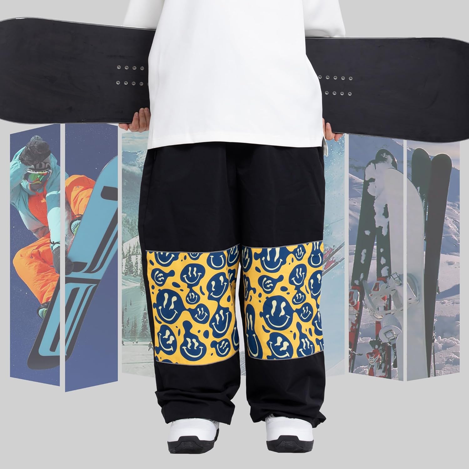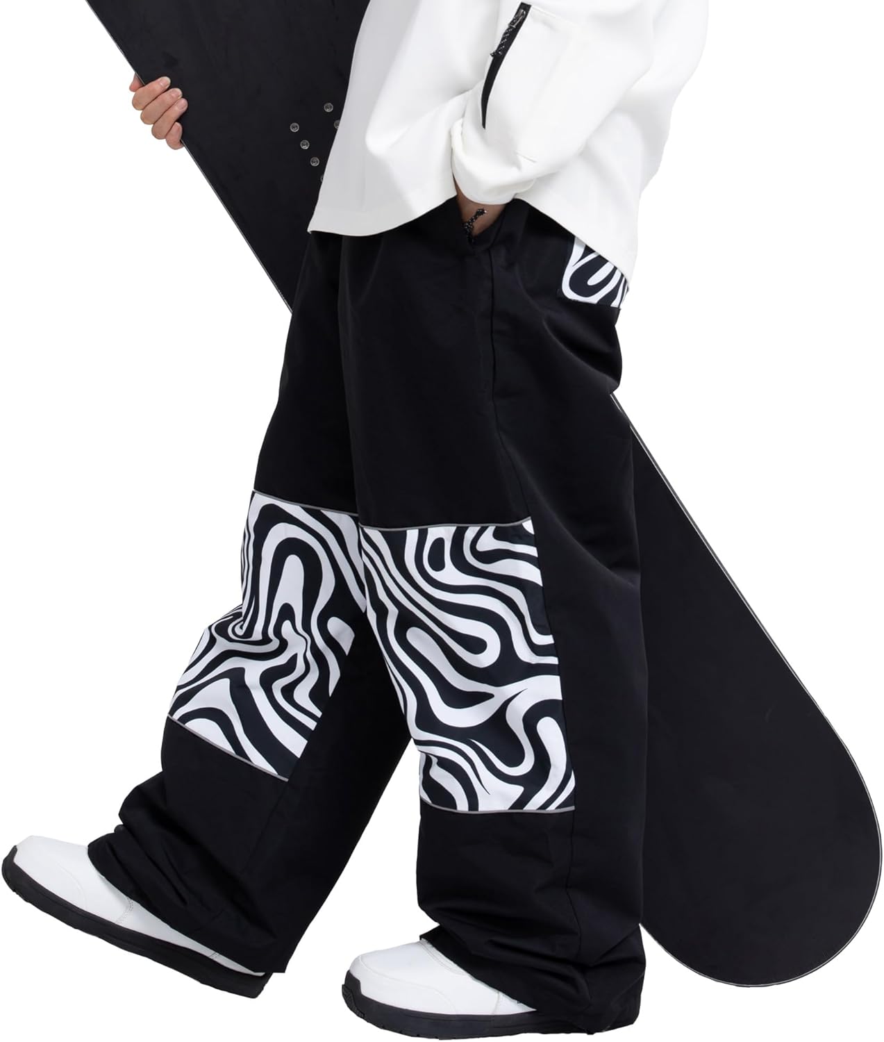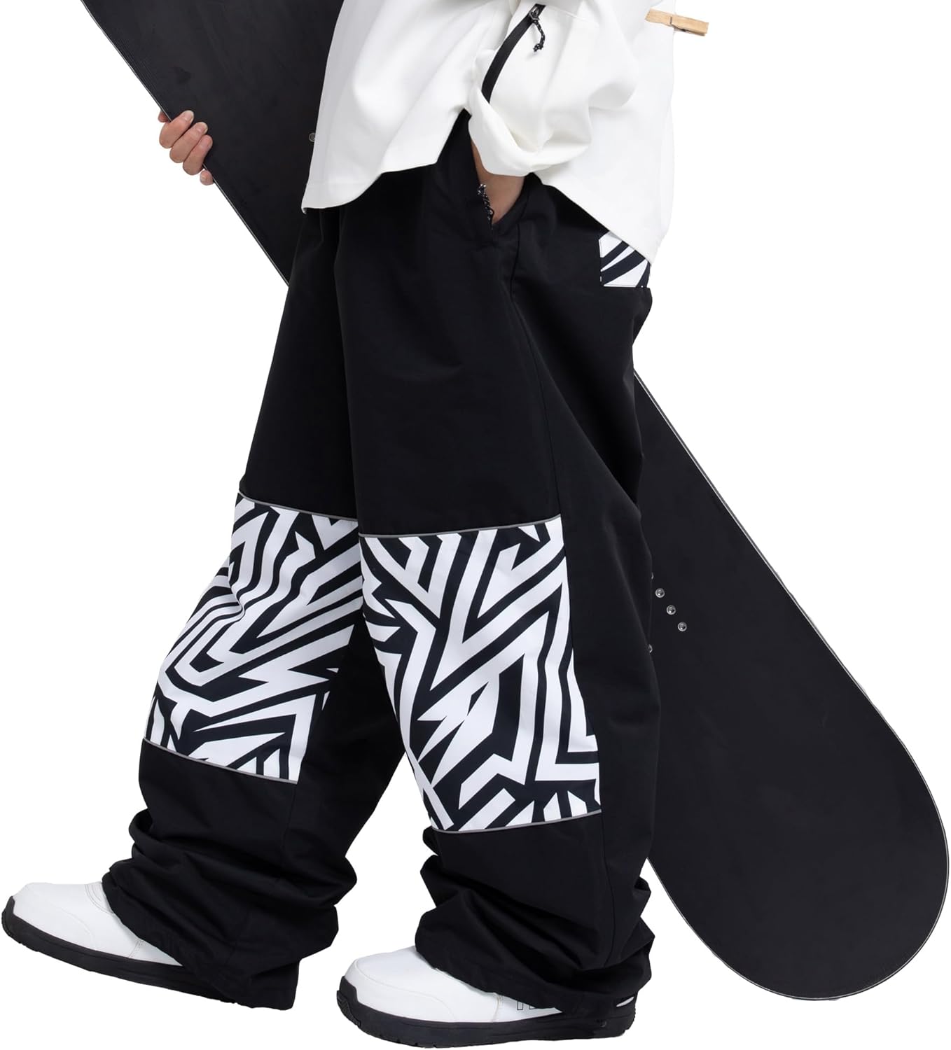 SNOWVERB Women Men Ski Baggy Cargo Knee Reflective Graphic Panel Casual Snow Pants Waterproof Loose Fit Snowboard Pants
