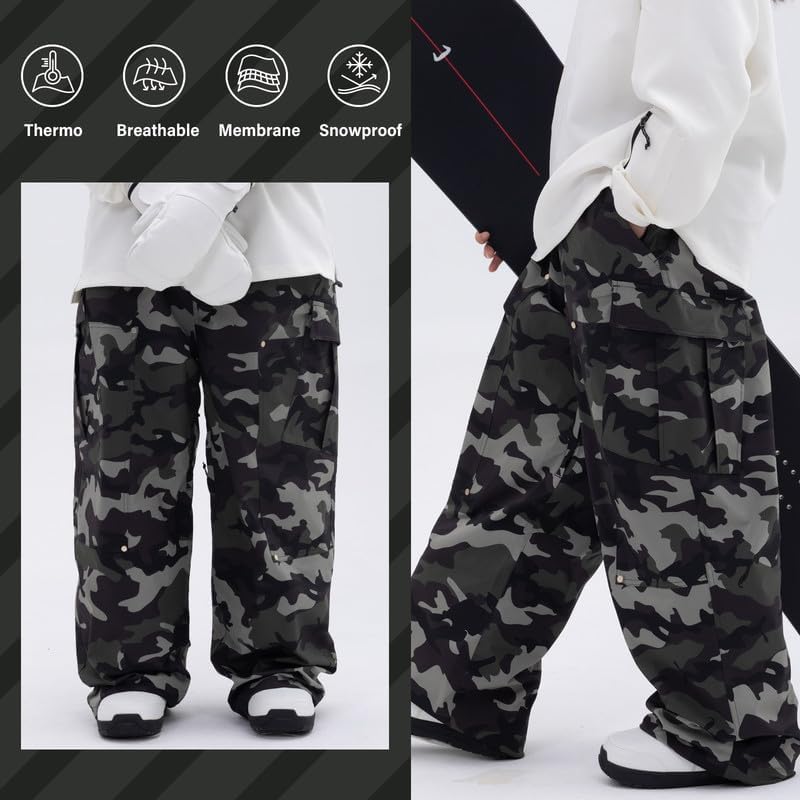HIEEKDER Men Women Baggy Snowboard Pants Ski Snow Pants Insulated Waterproof Winter Outdoor Loose Fit