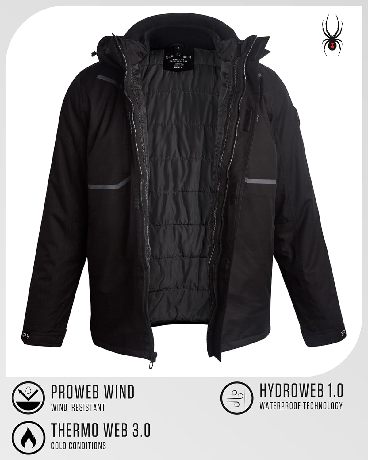 Spyder Mens Ski Jacket - 3-in-1 System Snow Waterproof Winter Jackets for Men - Mens Snowboard Jacket with Detachable Hood
