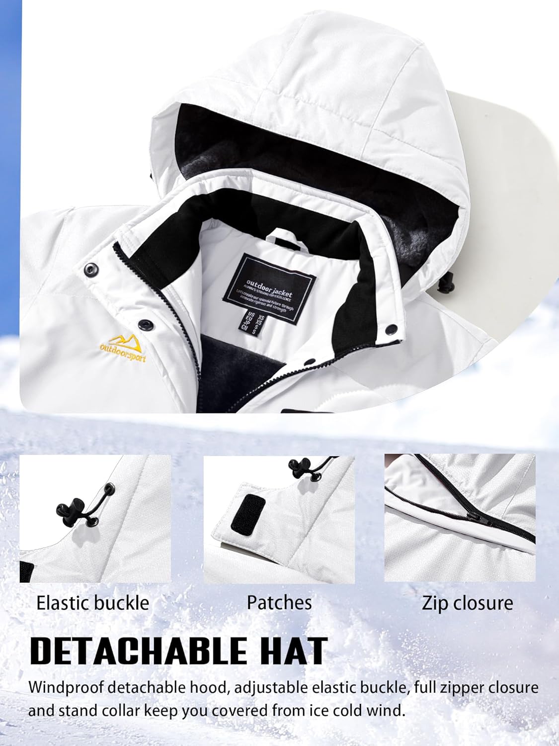 UTWGN Men's Ski Jacket Winter Warm Snow Coat Waterproof Windbreaker Hooded Work Outerwear Snowboarding Jackets