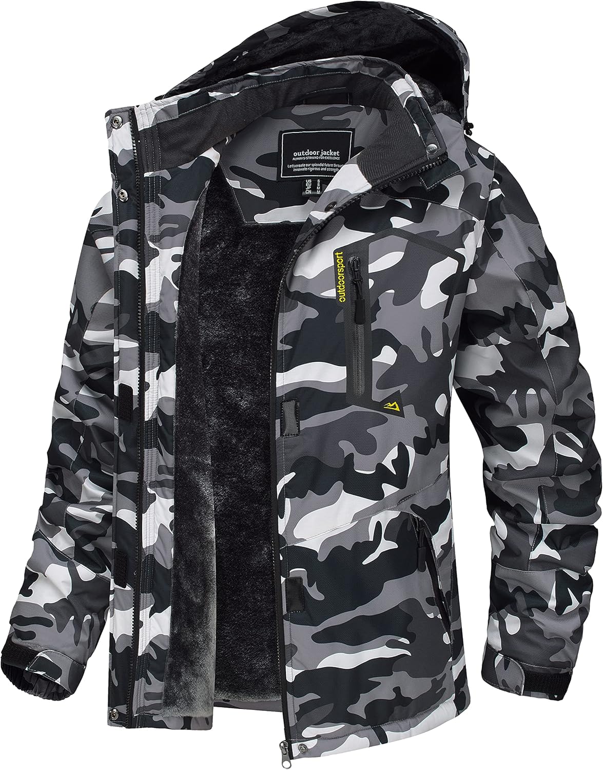 Buyboxs Mens Winter Snow Jacket Waterproof Ski Jackets Snowboard Rain Warm Coat Insulated Hood Fleece Lined
