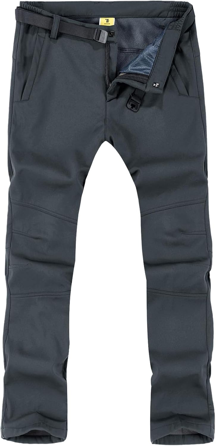 TBMPOY Men's Snow Ski Hiking Pants Waterproof Winter Fleece Lined Pants Camping Skiing Ice Fishing Pants with Belt