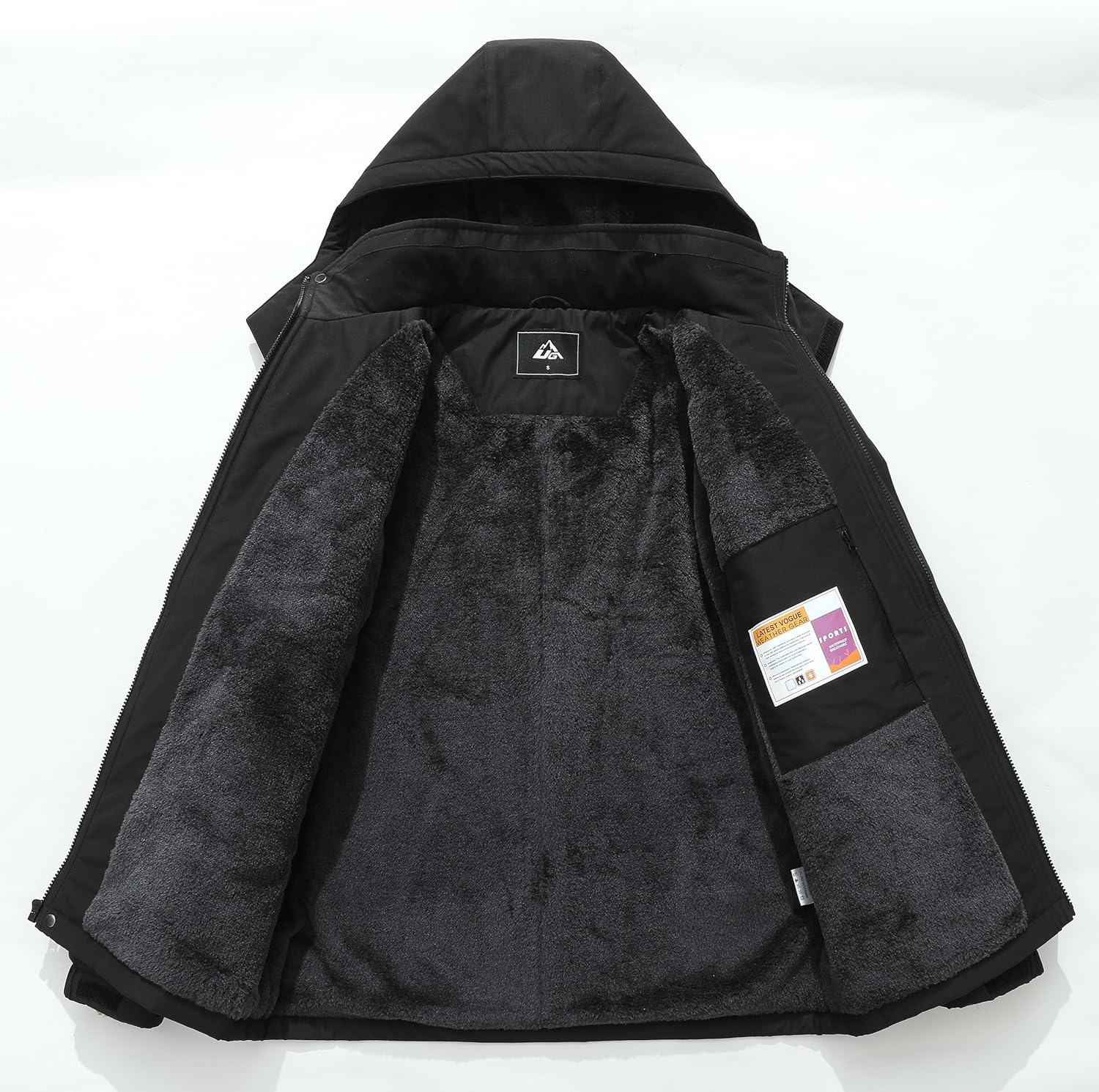 Vrilibo Boys Waterproof Ski Jacket Winter Warm Thick Snow Coat Fleece Lined Kids Outdoor Hooded Snowboard Jacket