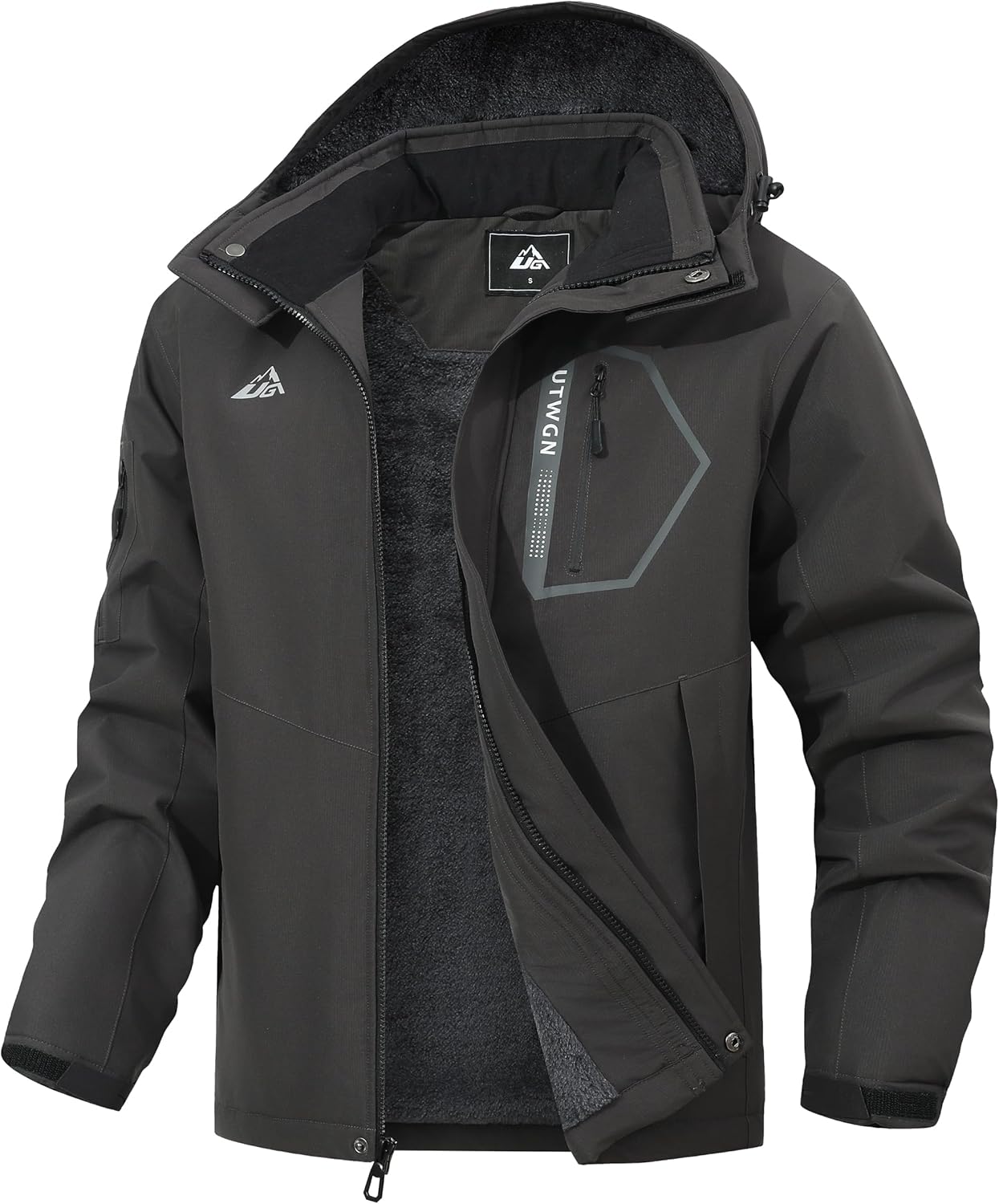 UTWGN Men's Winter Waterproof Ski Jacket,Warm Snowboarding Coat Snow Windbreaker Hooded for Hiking