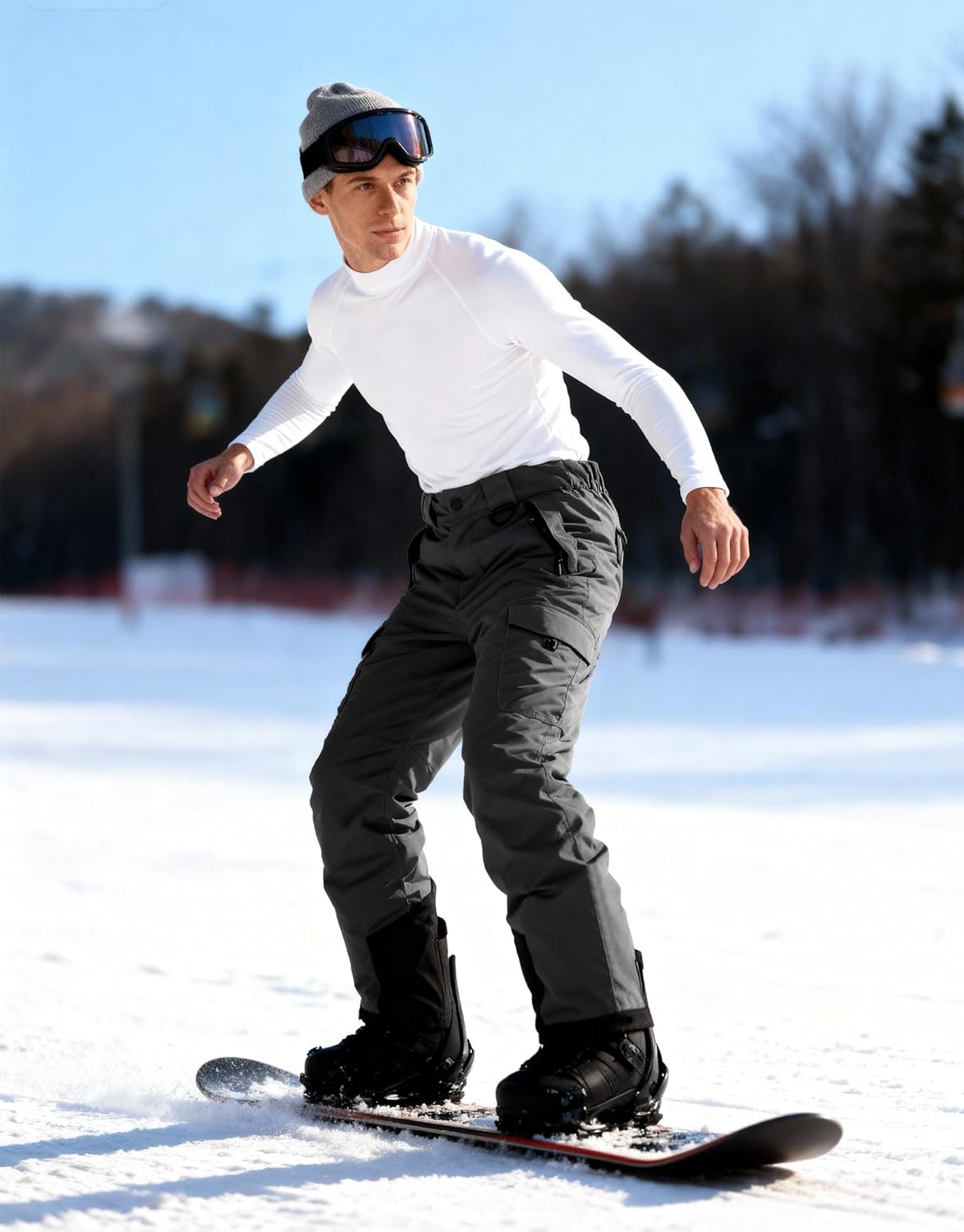 YEEFINE Men's Snow Ski Pants Insulated Womens Cargo Snowboard Pants Baggy Waterproof Winter Outdoor