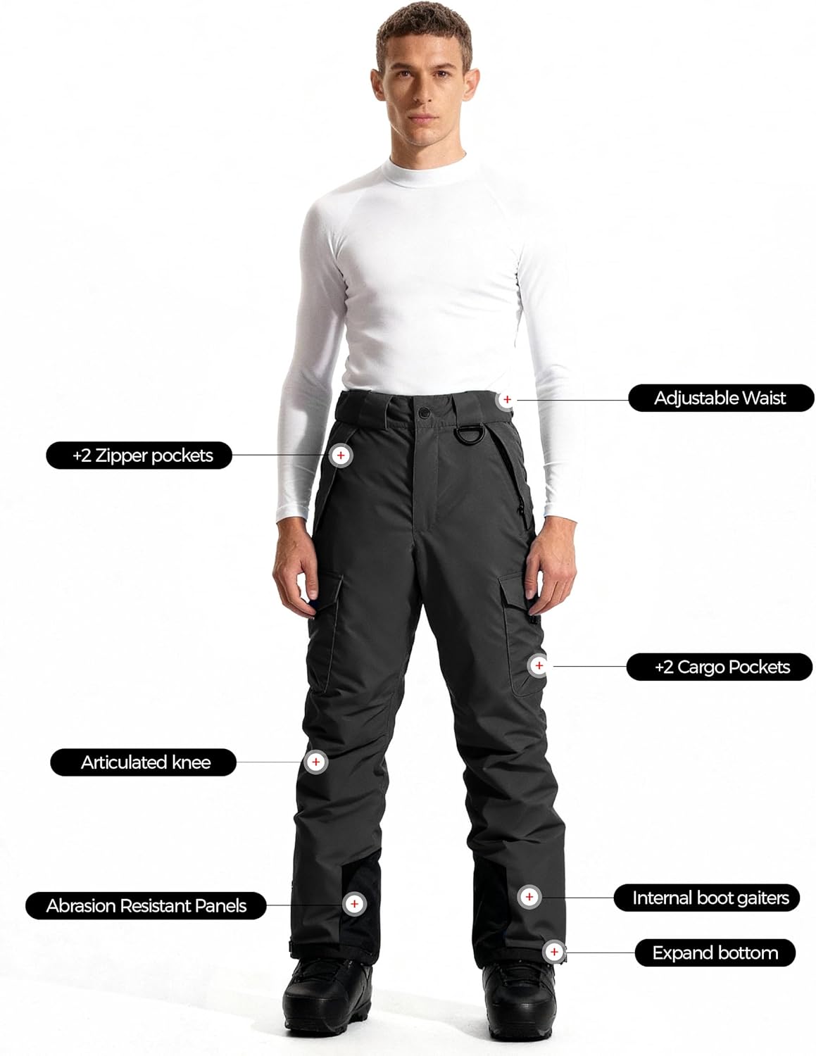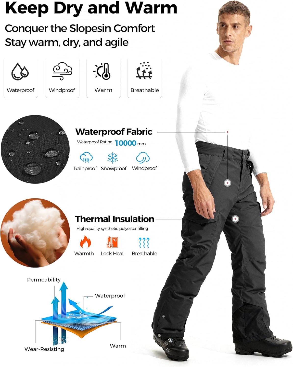 Wantdo Men's Waterproof Ski Pants Warm Insulated Snow Pants Hiking Cargo Pants