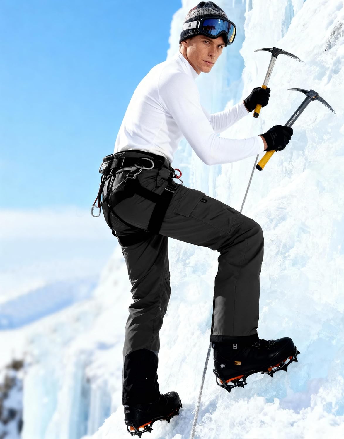 MAGCOMSEN Men's Winter Pants Fleece Lined Ski Snow Pants Water Resistant 4 Zip Pockets Outdoor Pants