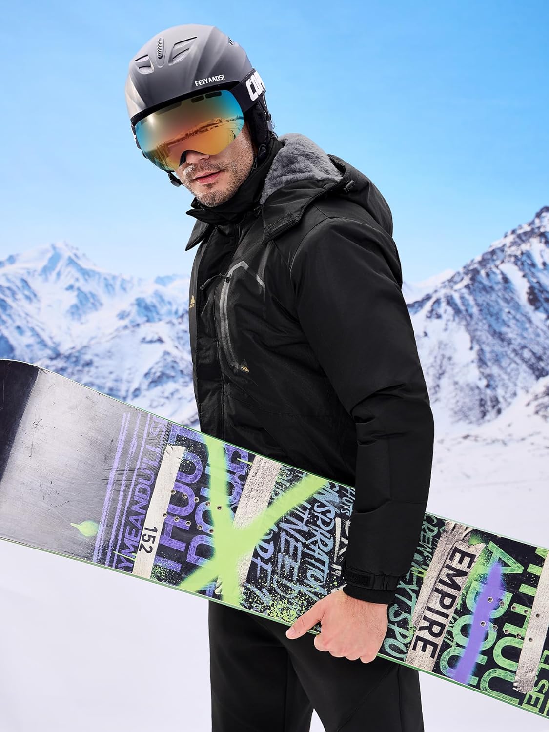 Buyboxs Mens Winter Snow Jacket Waterproof Ski Jackets Snowboard Rain Warm Coat Insulated Hood Fleece Lined