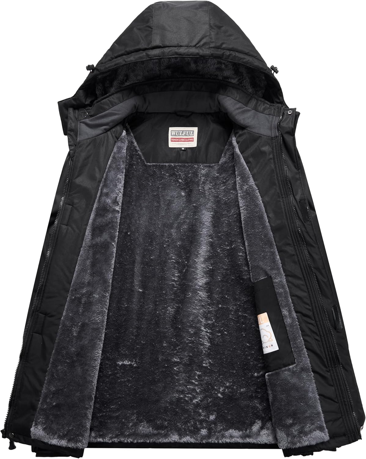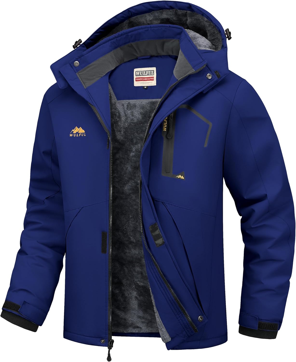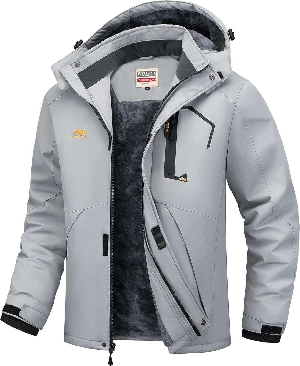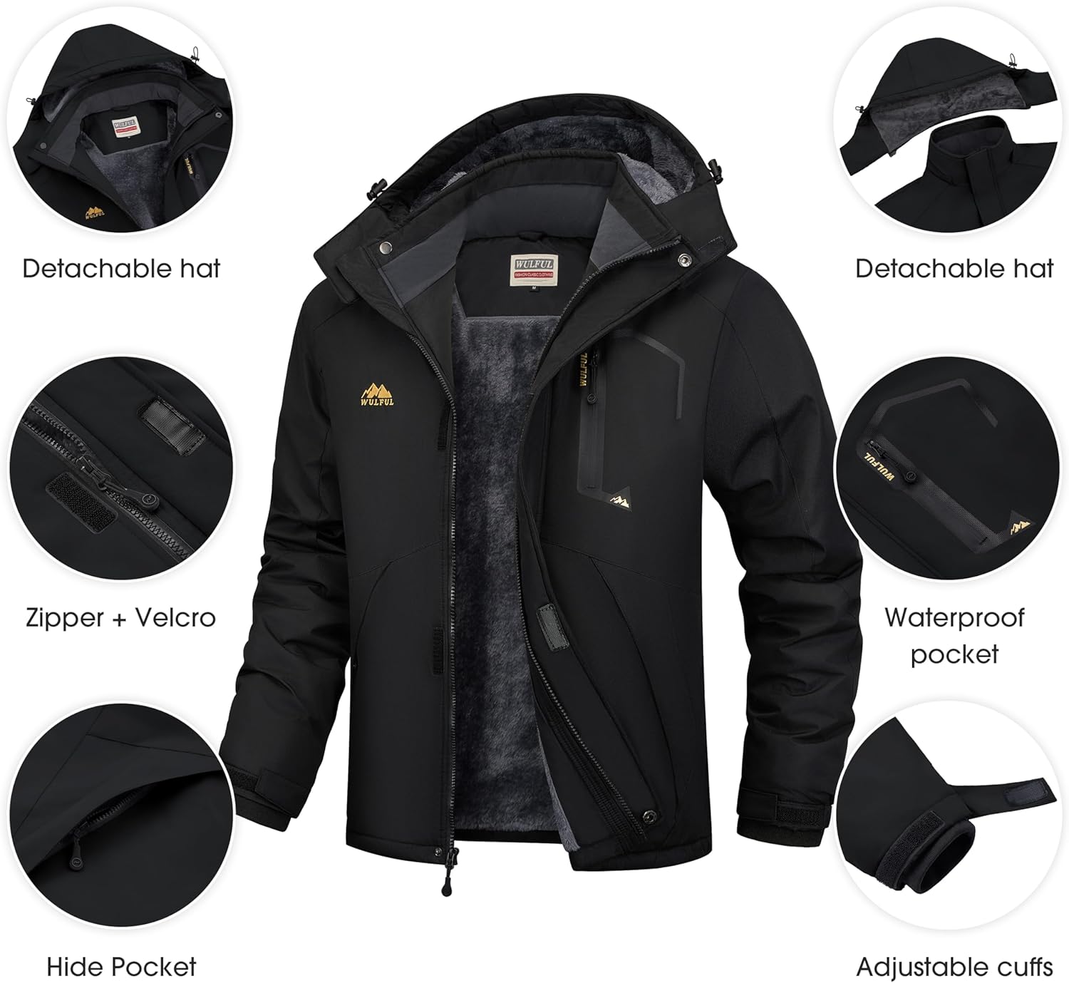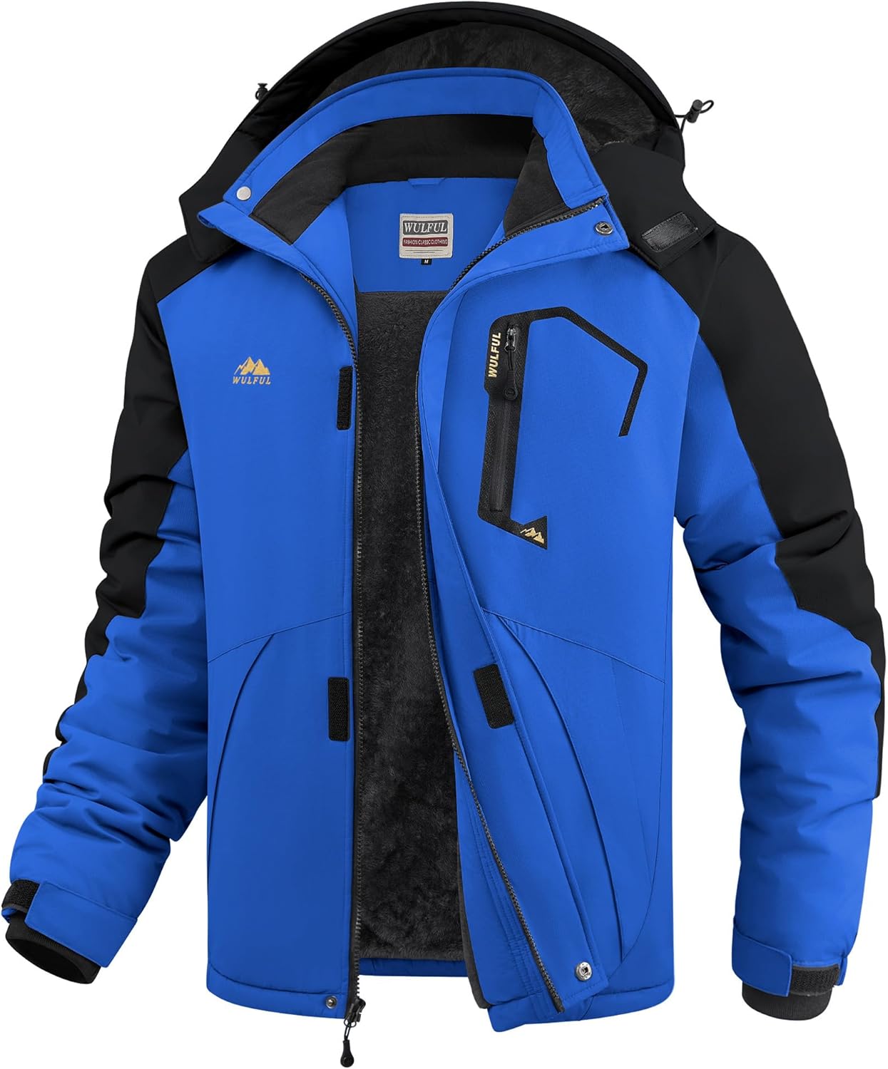 WULFUL Men's Ski Jackets Warm Winter Snow Windbreaker Resistant Snowboard Fleece Coat Mountain Waterproof Parka with Hood