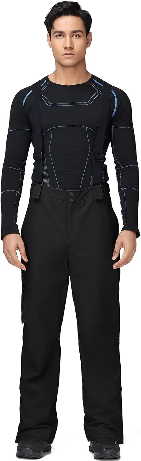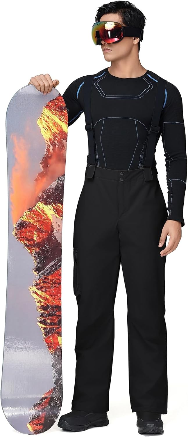 YEEFINE Men's Ski Snow Pants Insulated Waterproof Snowboard Cargo Pants Bibs Regular Fit