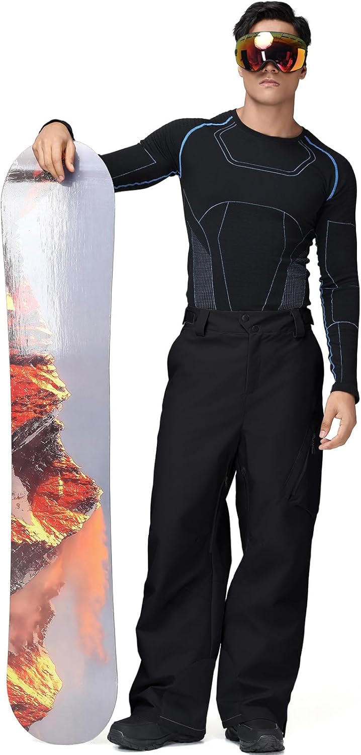 YEEFINE Men's Snow Ski Pants Insulated Cargo Snowboard Pants Bibs Loose Baggy Waterproof Winter Sports