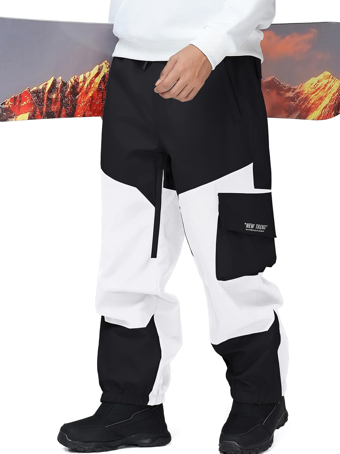 YEEFINE Men's Snow Ski Pants Insulated Womens Cargo Snowboard Pants Baggy Waterproof Winter Outdoor