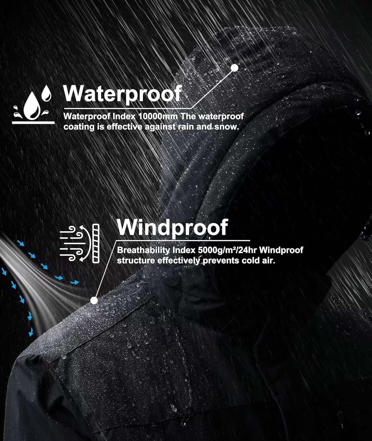 Buyboxs Mens Winter Snow Jacket Waterproof Ski Jackets Snowboard Rain Warm Coat Insulated Hood Fleece Lined