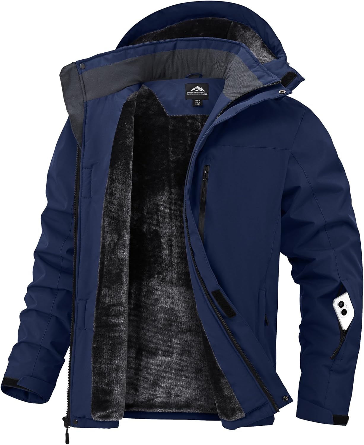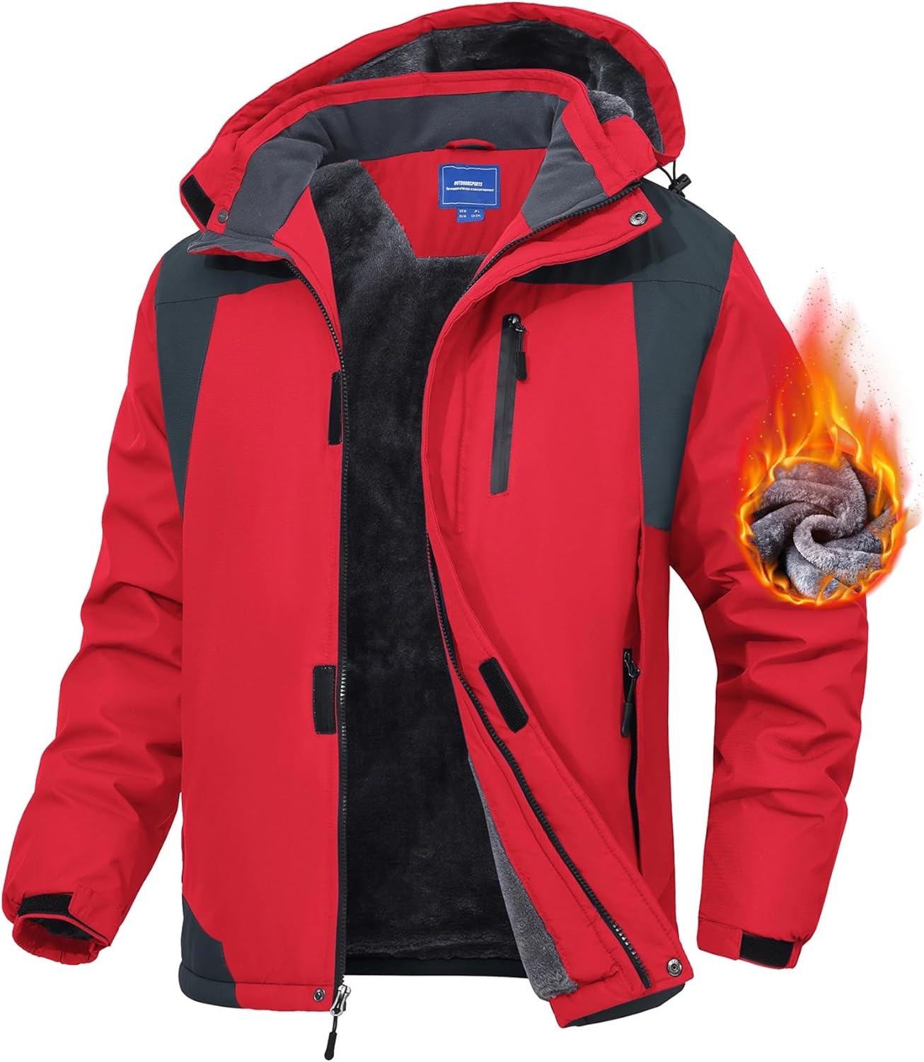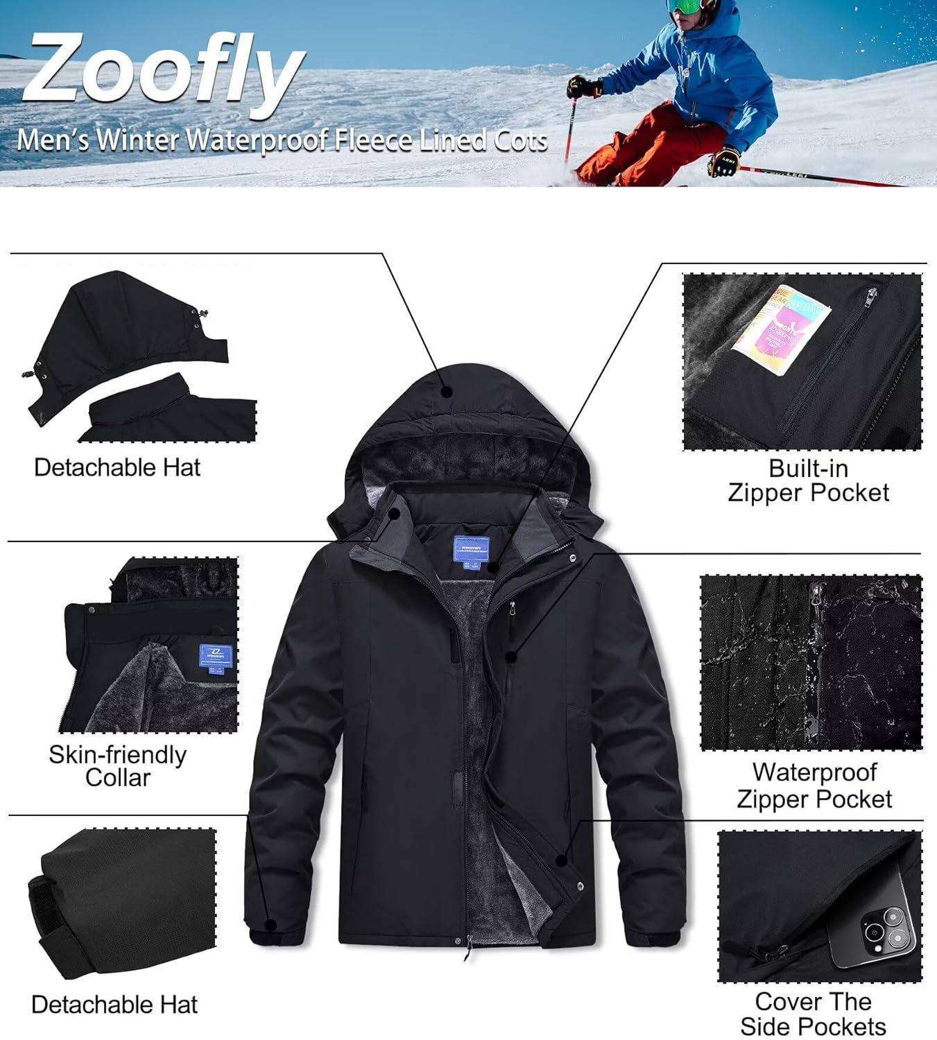 Zoofly Men's Mountain Ski Jacket Waterproof Fleece Liner Snow Coat Warm Winter Windproof Hooded Raincoat